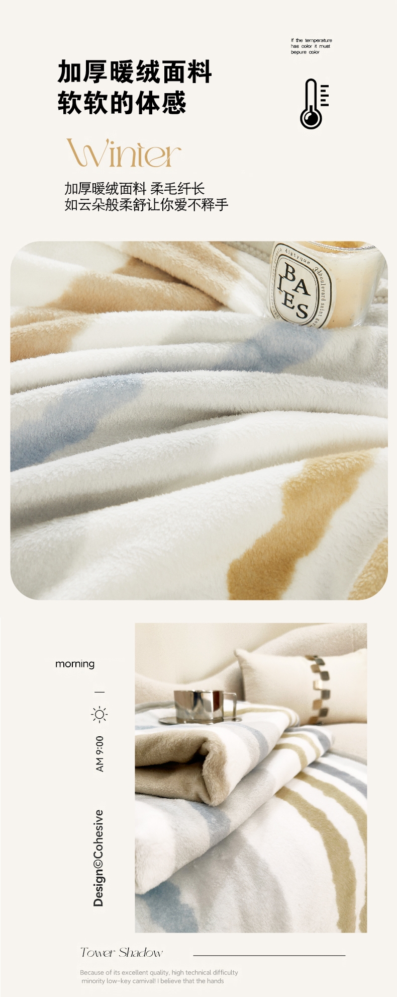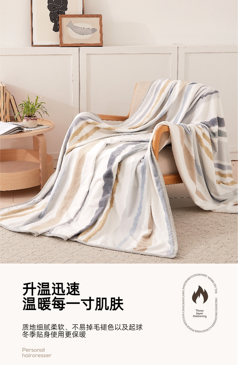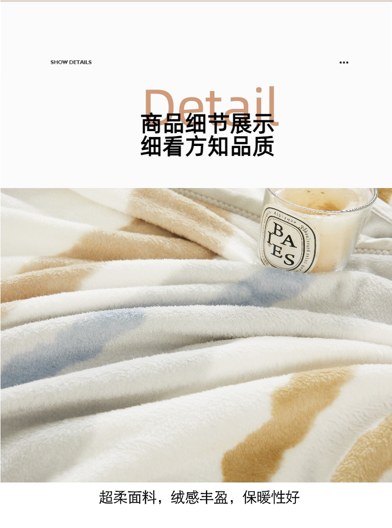 超细绒面料,绒毛柔软细腻保暖性好;绒面细密、编织 紧密,形成丰盈饱满的绒面;;一毯多用,居家生活好帮手。
