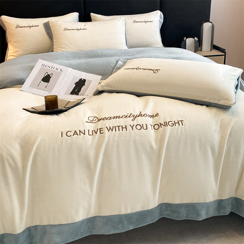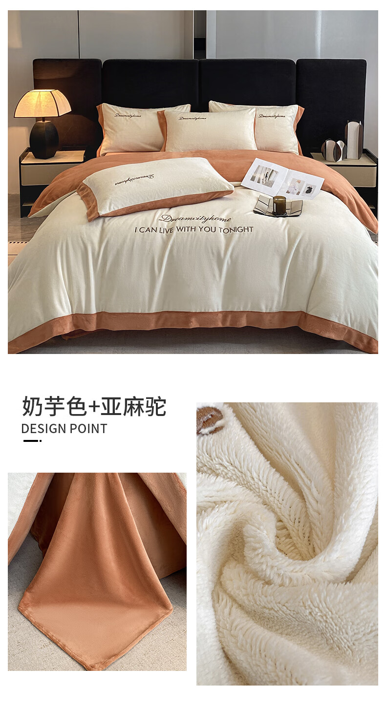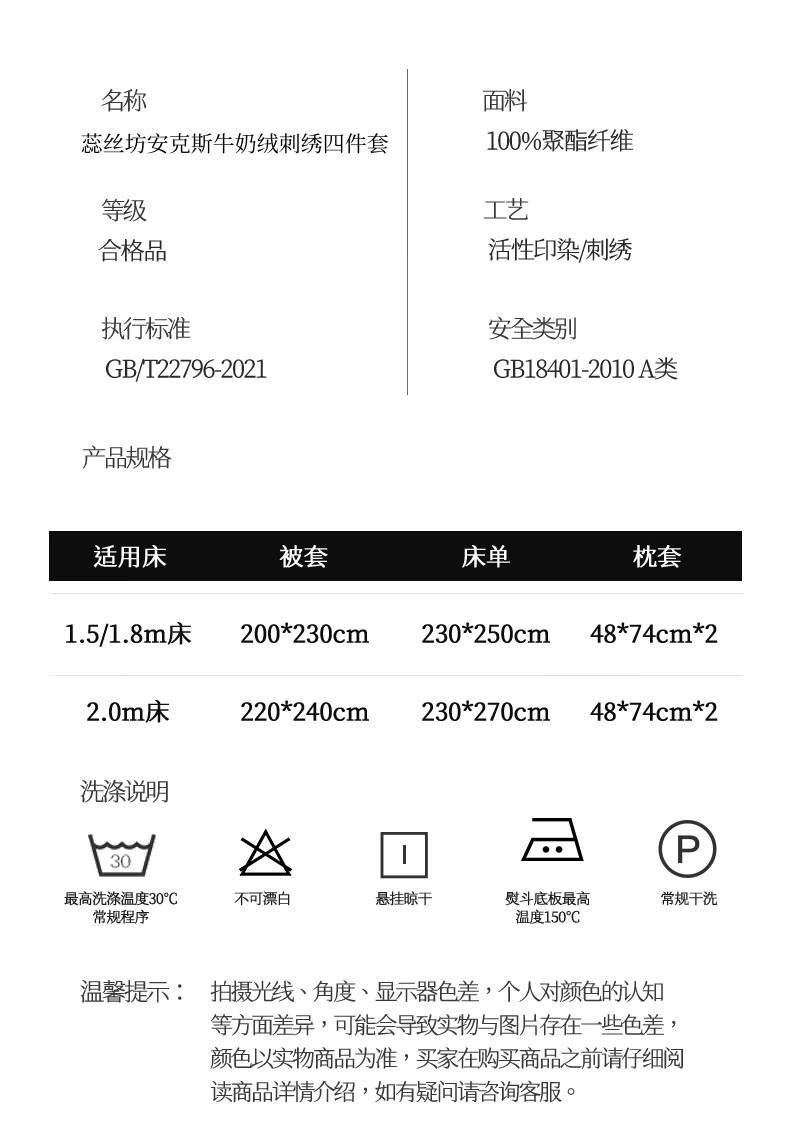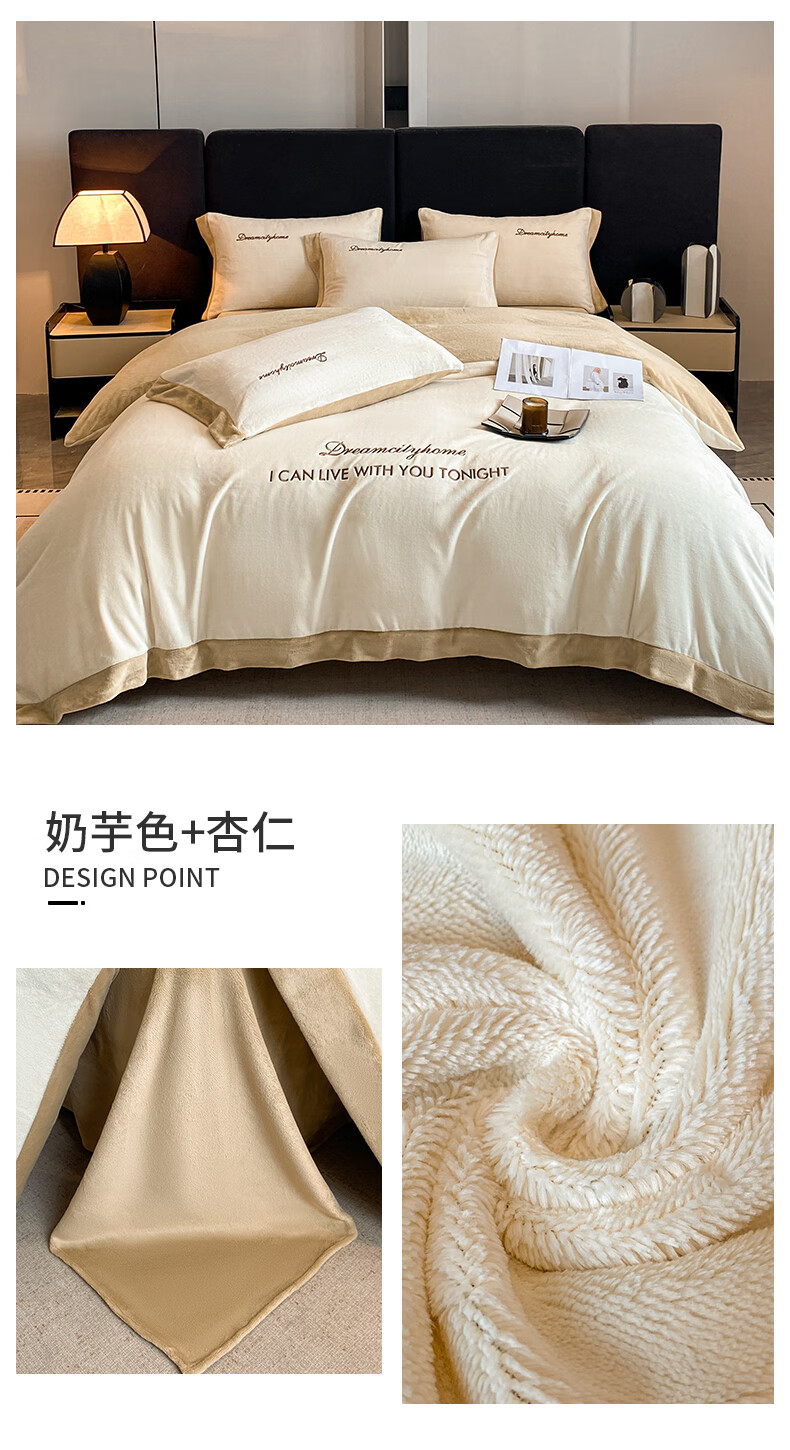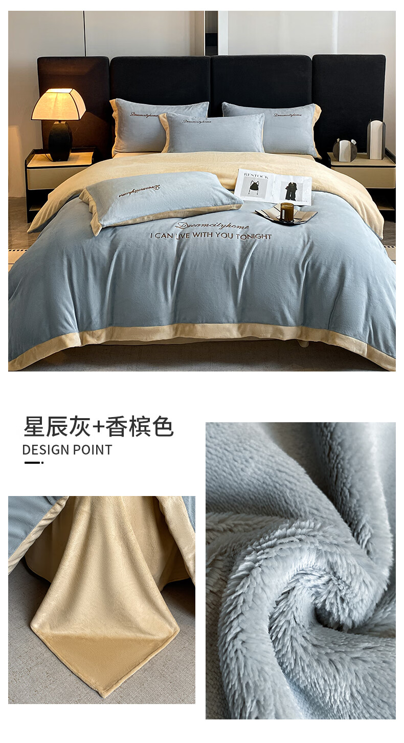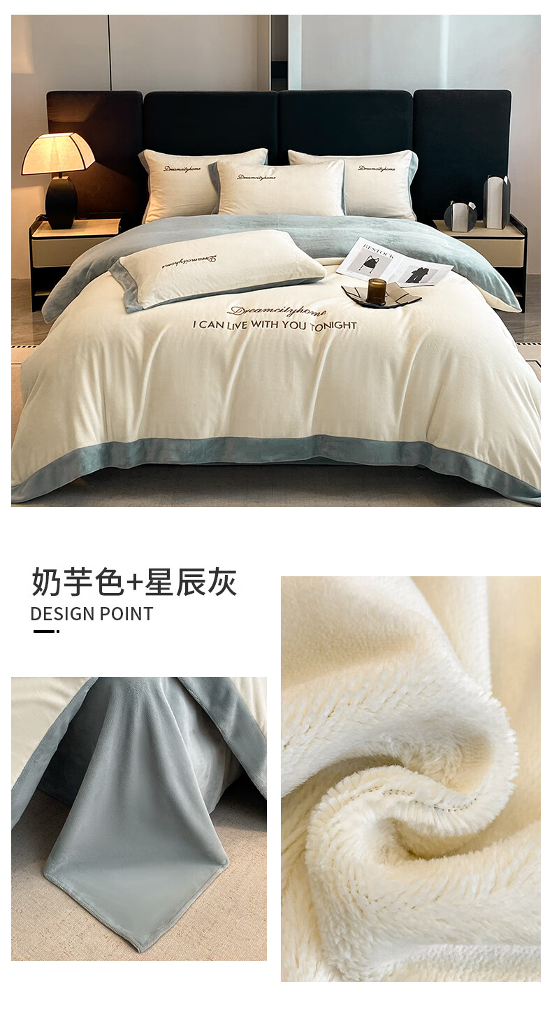 蕊丝坊 安克斯牛奶绒刺绣四件套加厚保暖