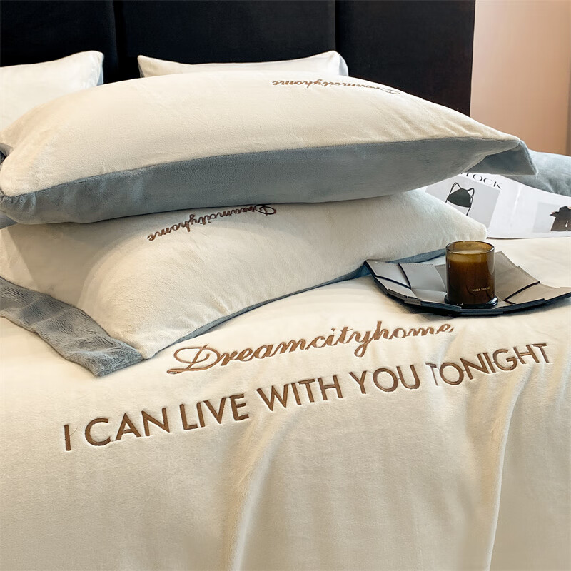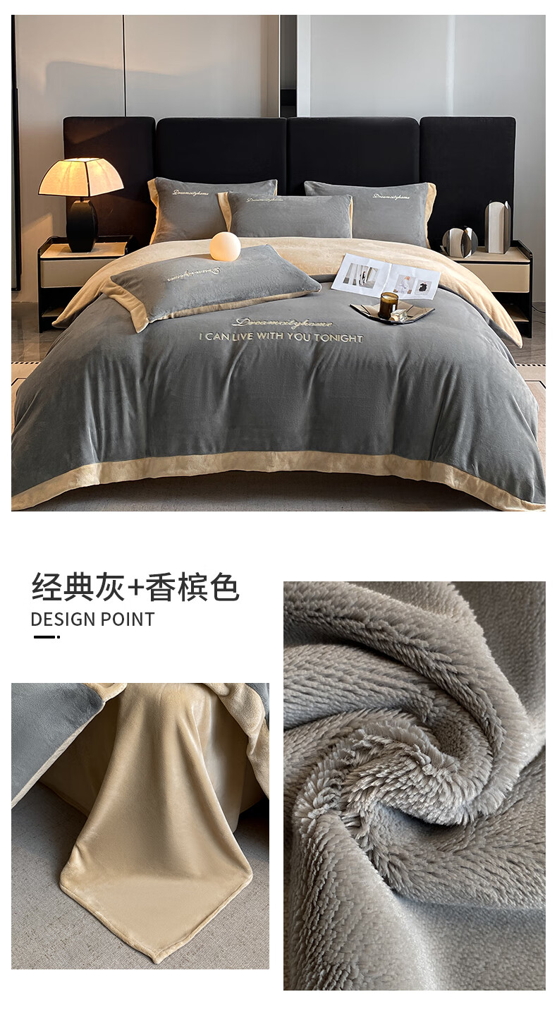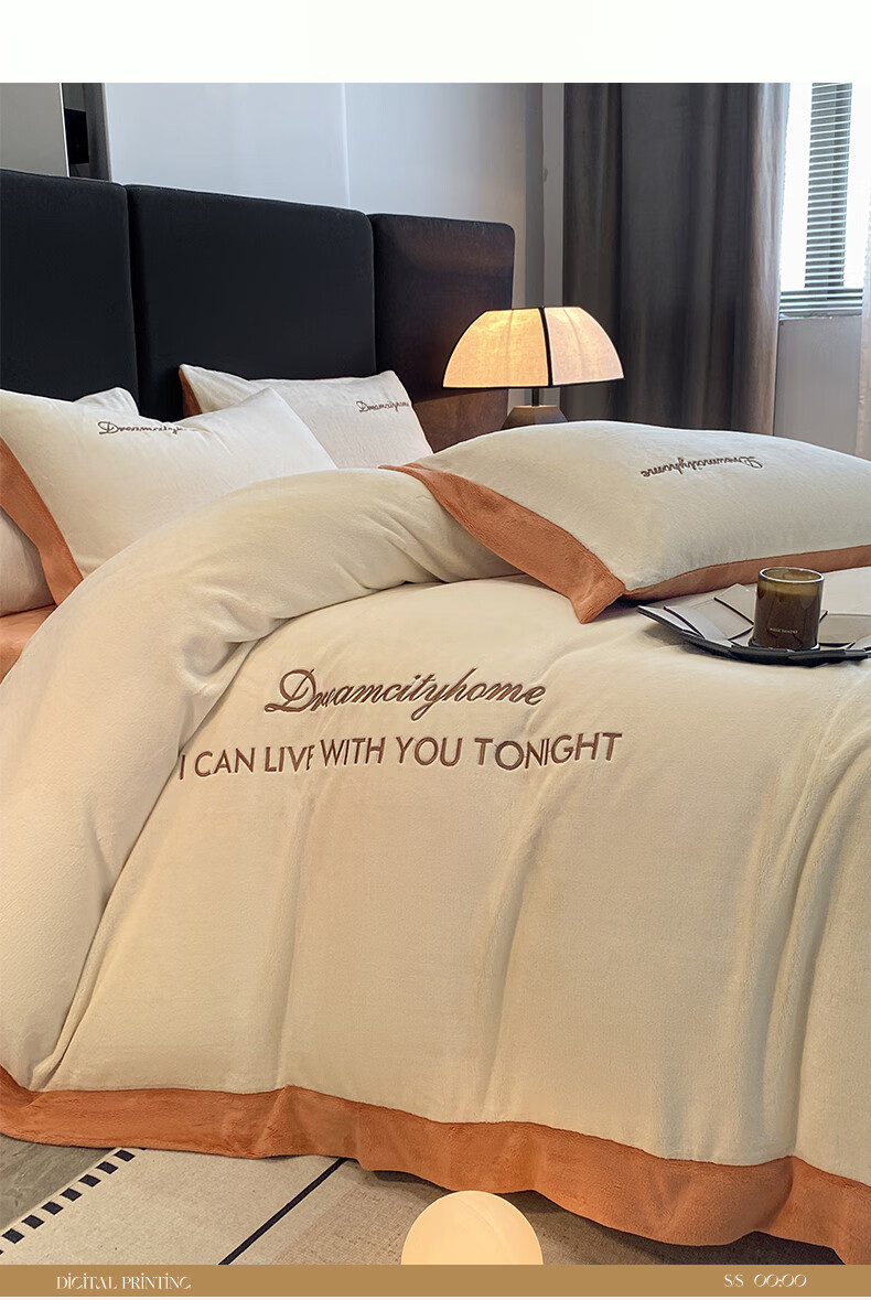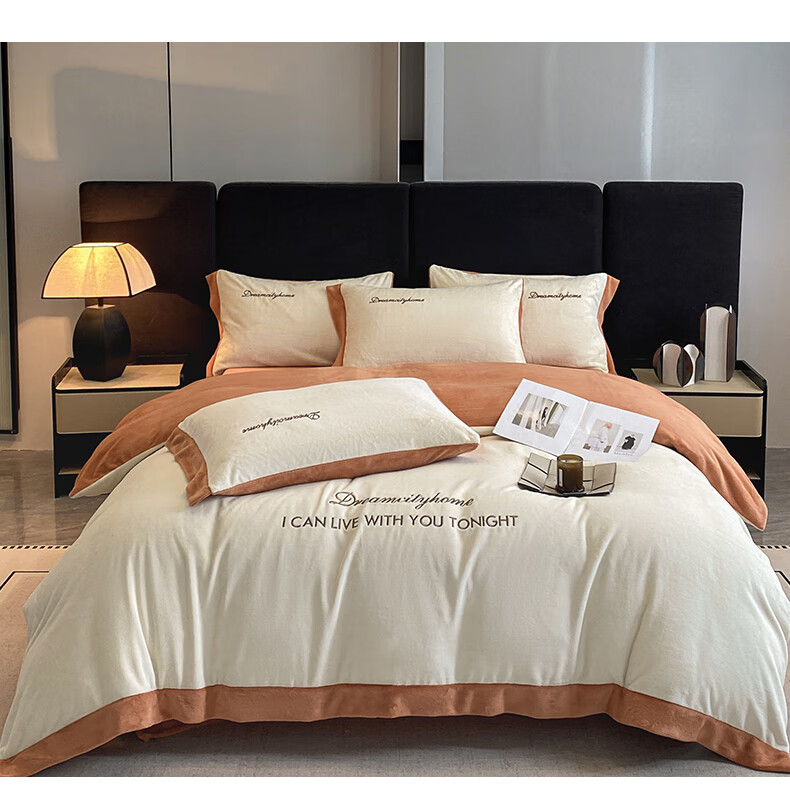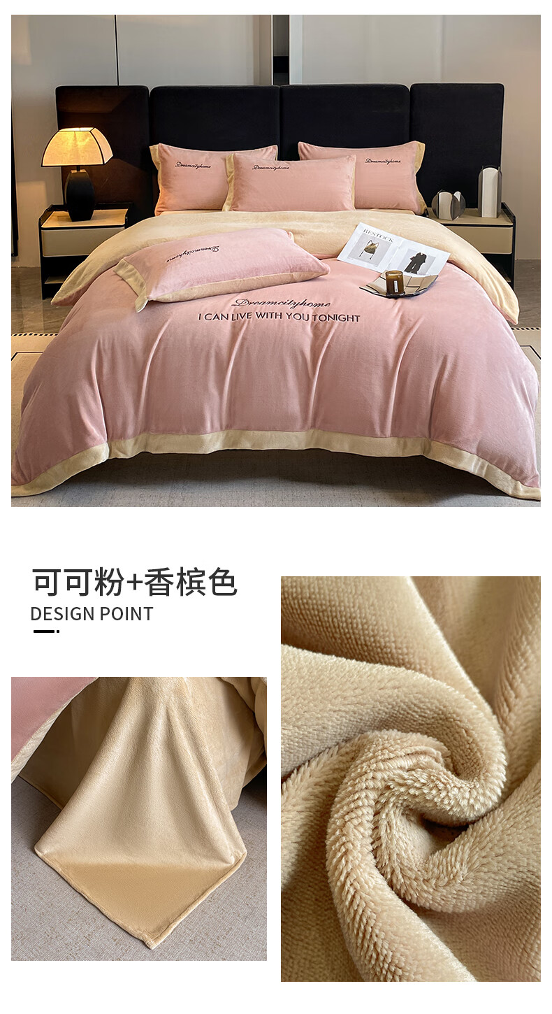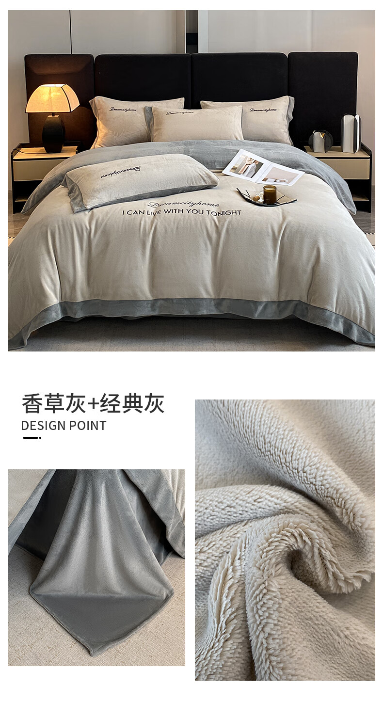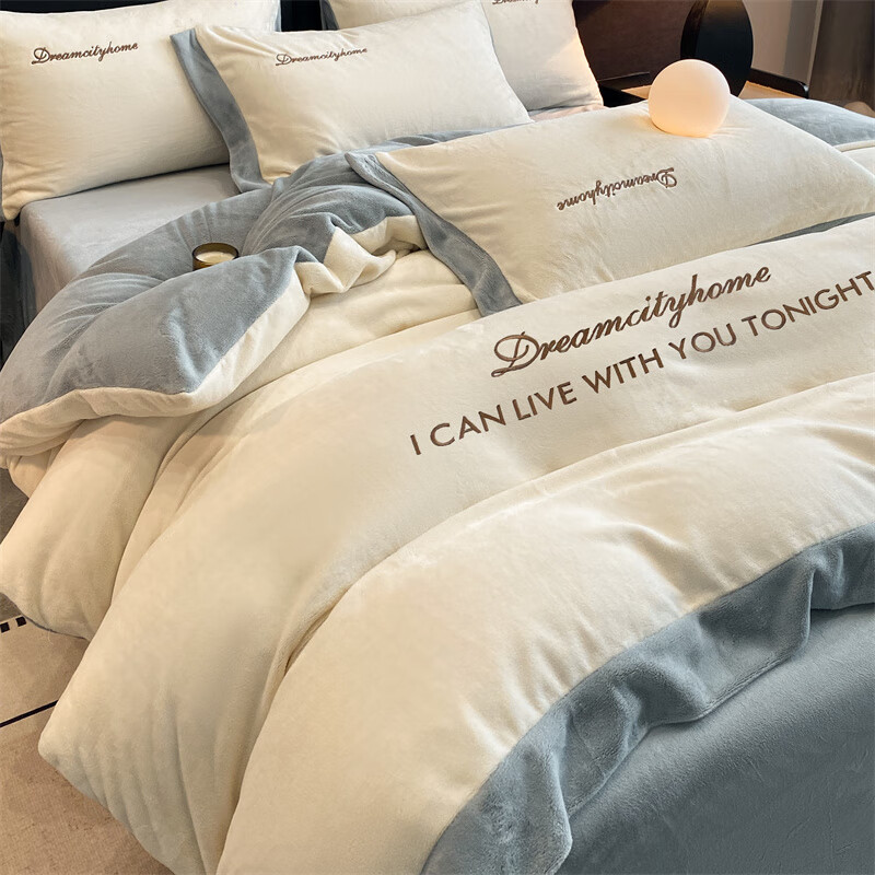 蕊丝坊 安克斯牛奶绒刺绣四件套加厚保暖