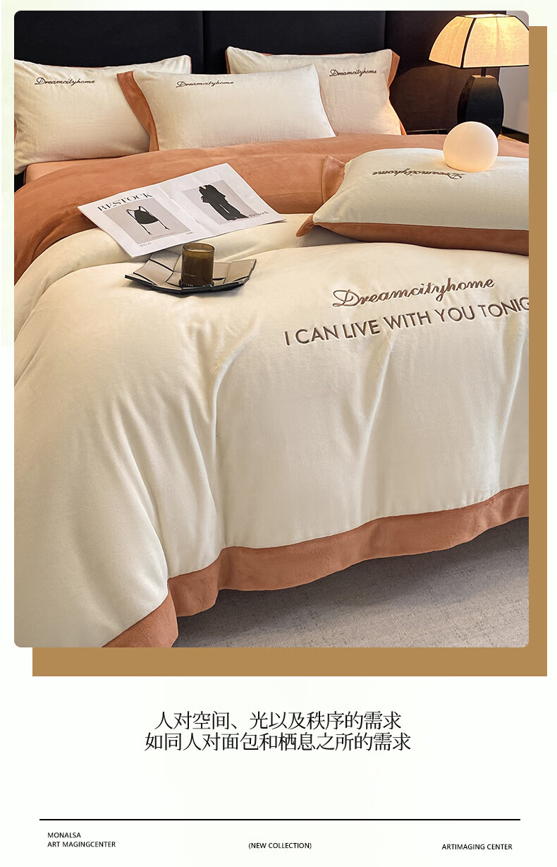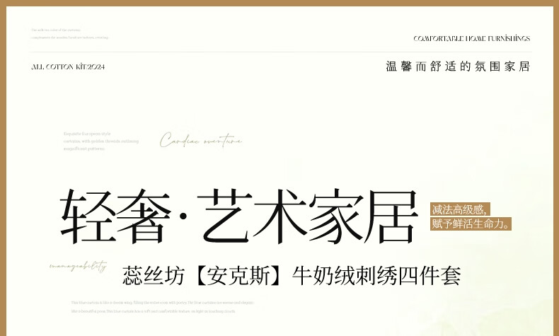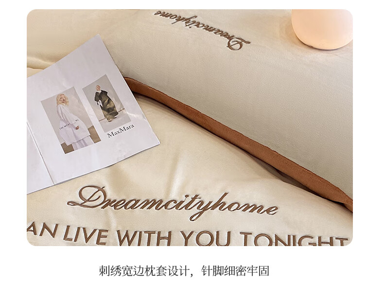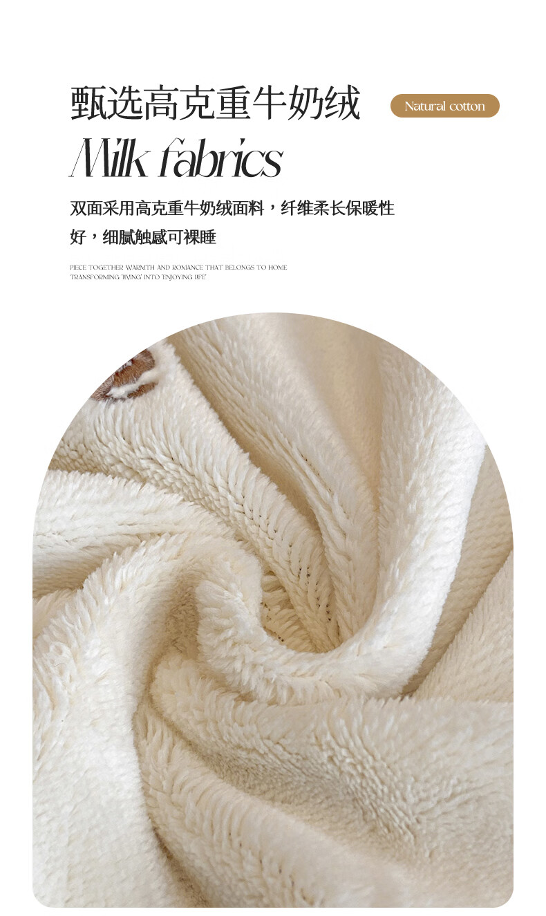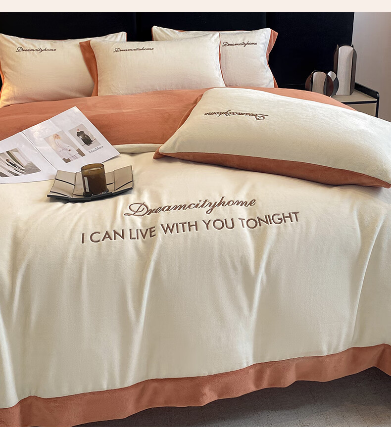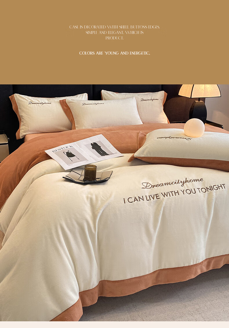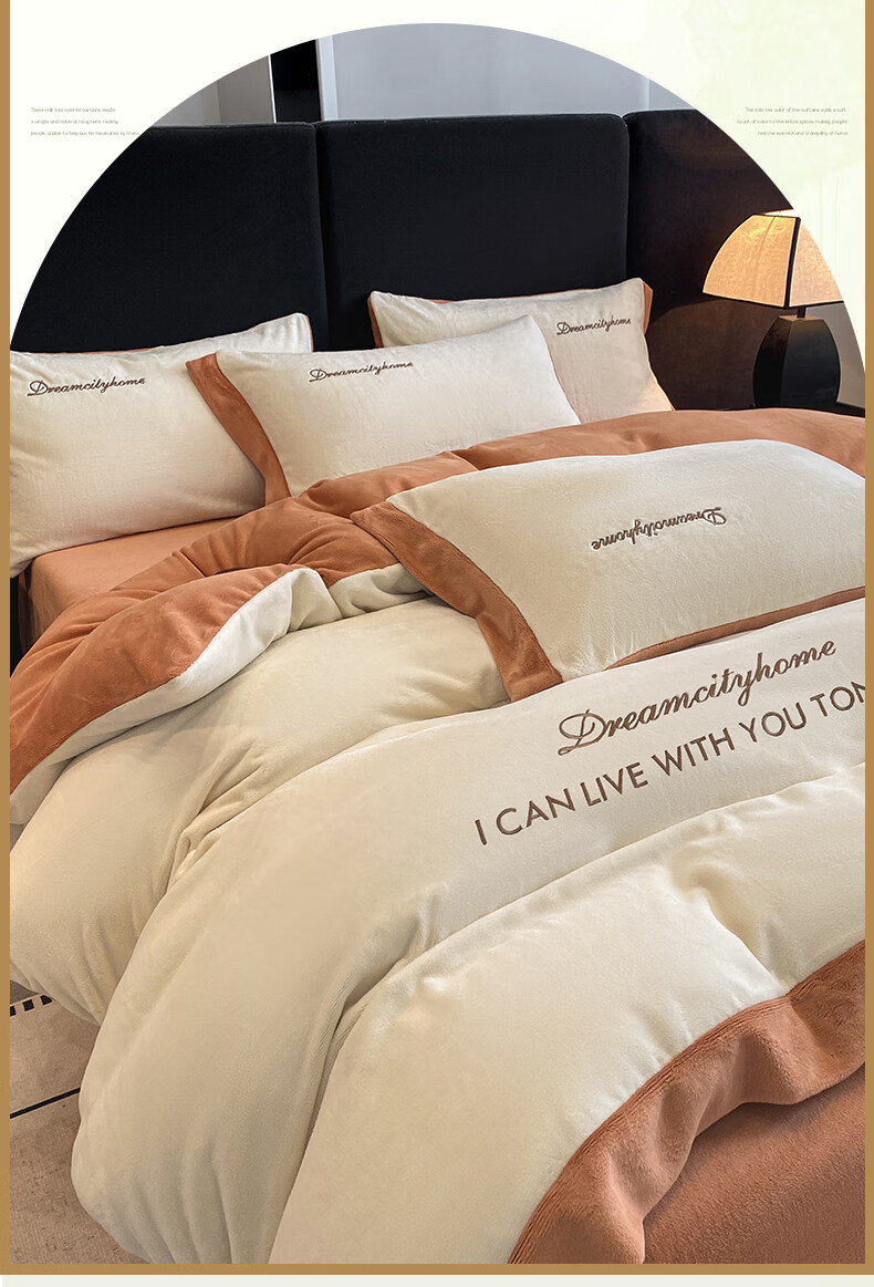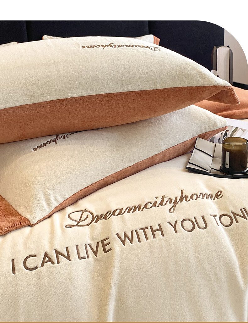 蕊丝坊 安克斯牛奶绒刺绣四件套加厚保暖