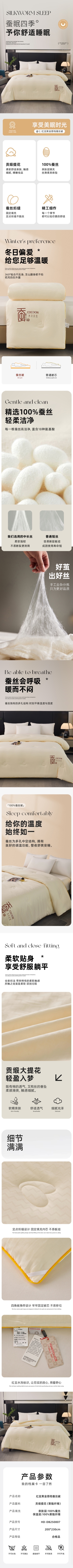 填 充:亲肤层/100%蚕丝+保温层/100%聚酯纤维