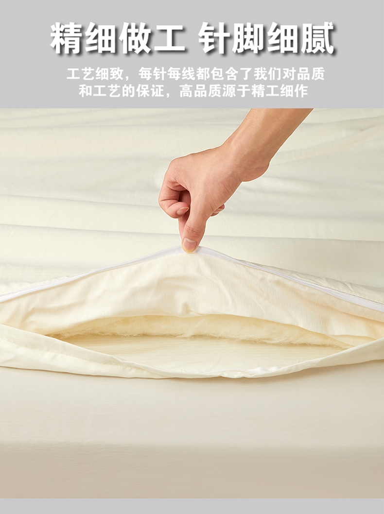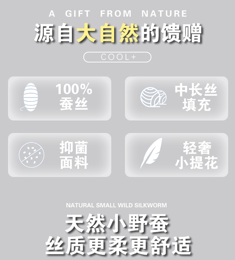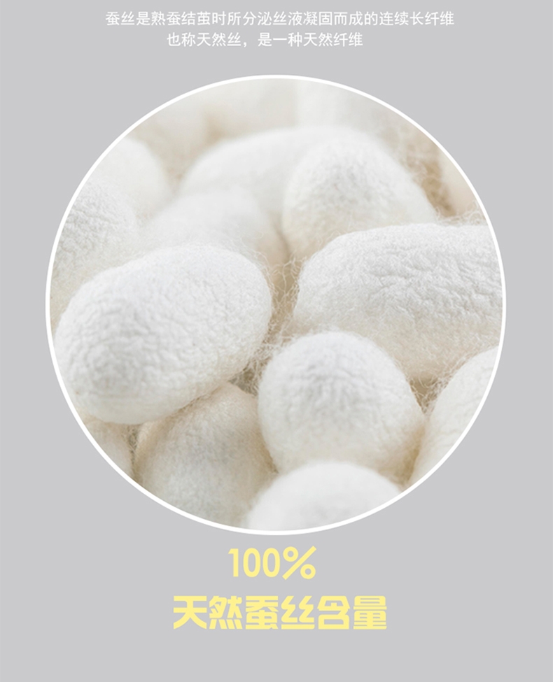 天然健康:由天然的蚕丝制成,富含18种氨基酸;保暖性能卓越,蚕丝内部约38%是空心的,能很好保暖;天然材质和舒适的触感有助于放松身心