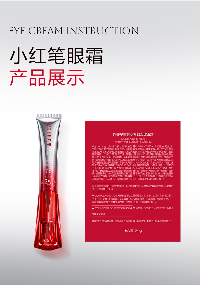 配置清单:丸美多重胜肽紧致淡纹嘭弹眼霜30g(3.0)*1+丸美多重胜肽紧致淡纹嘭弹眼霜10g*3