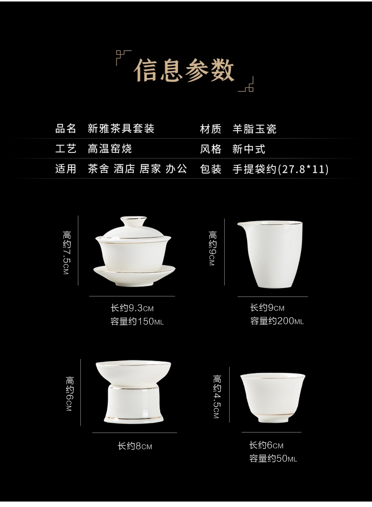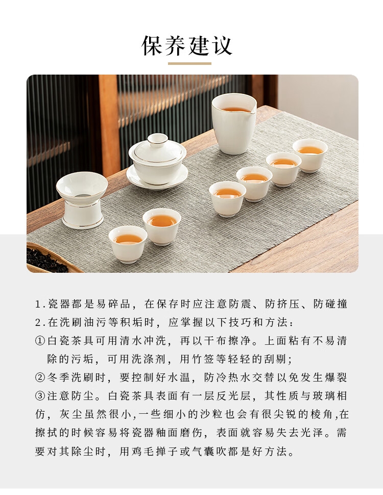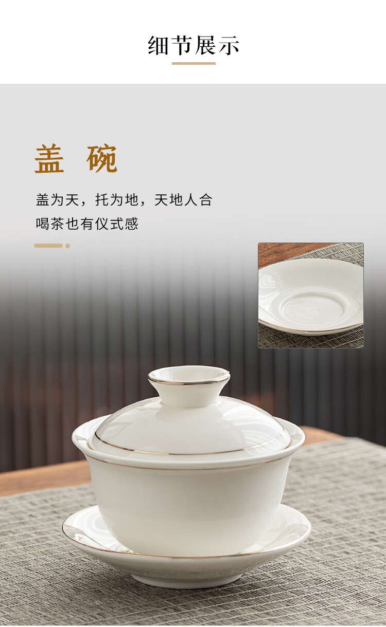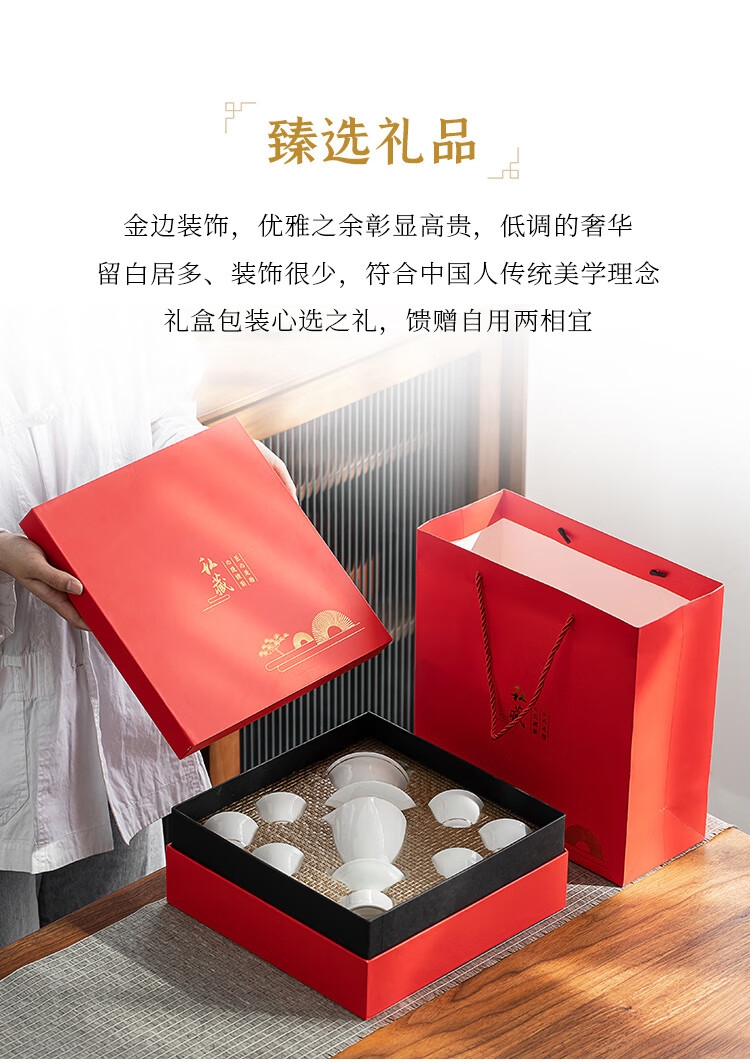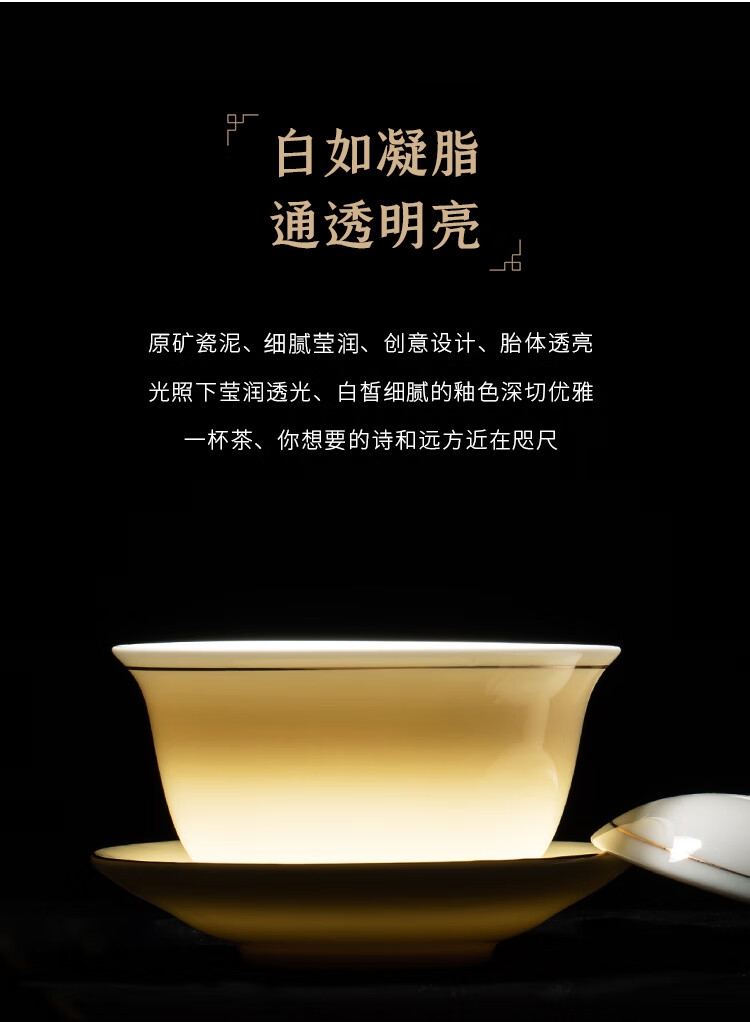 羊脂玉瓷 通透明亮 礼盒美观;纯白套装 金线描边 简约雅致;器型饱满 趁手好拿 方便实用