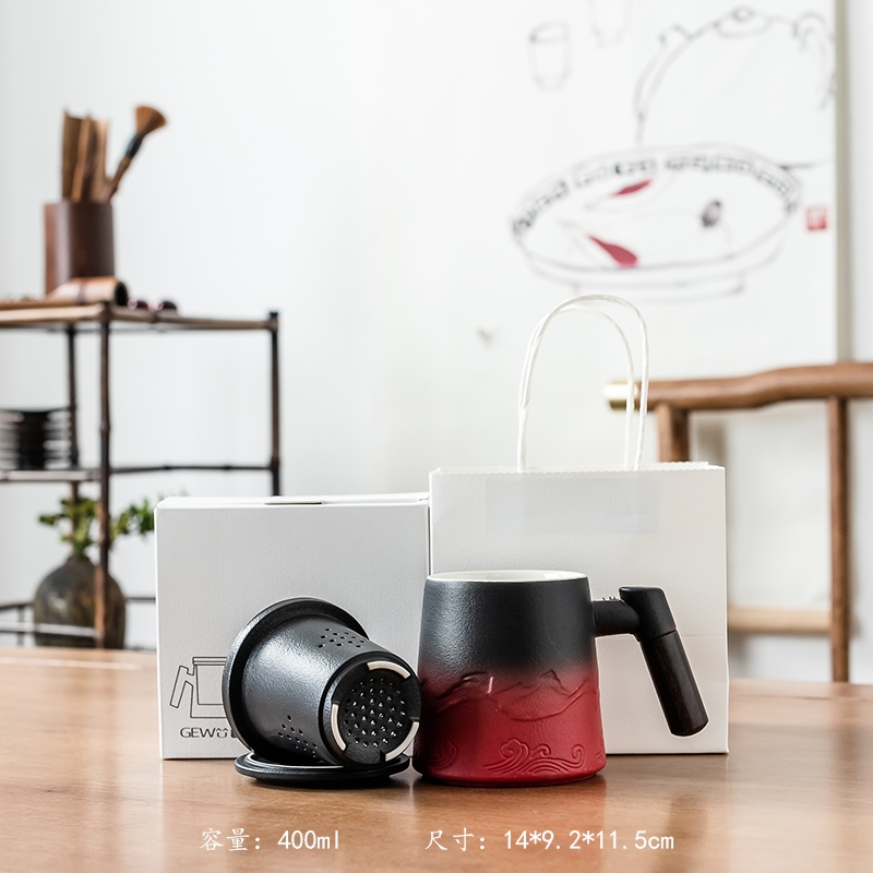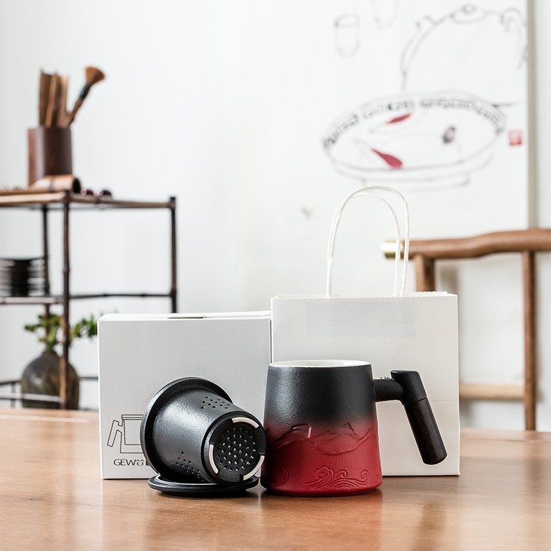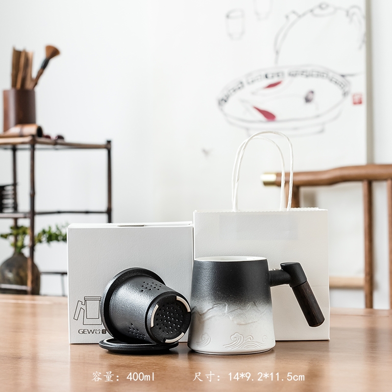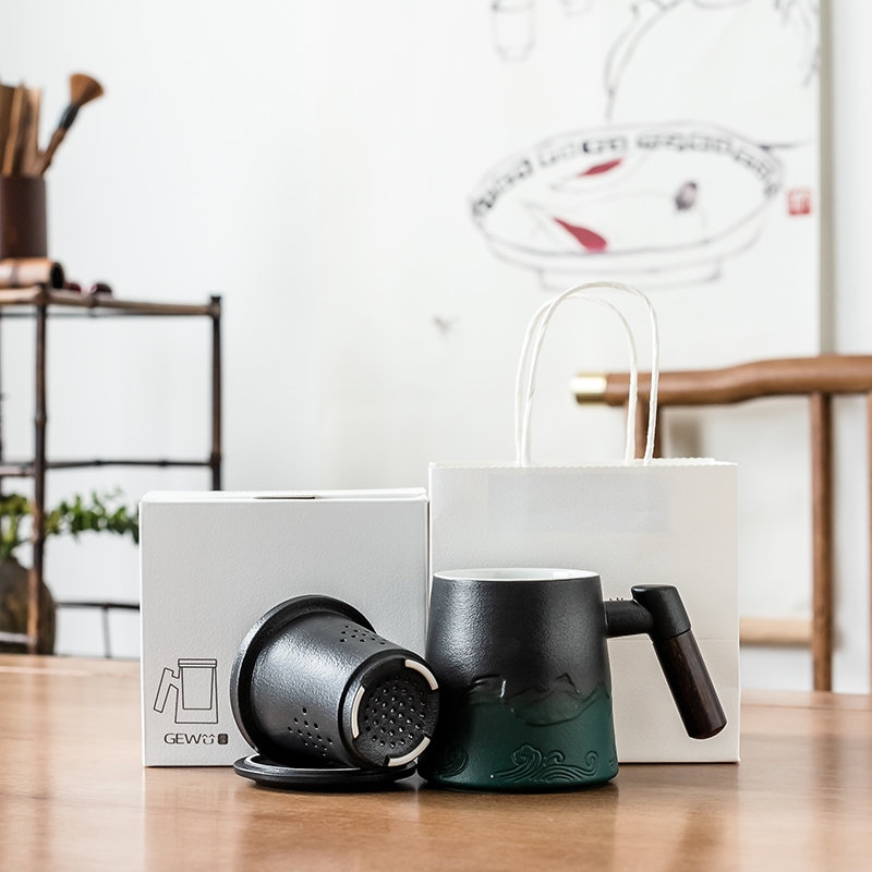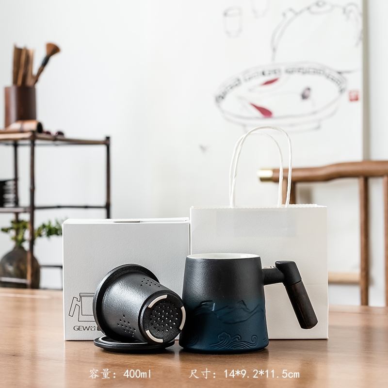 拂器 山海陶瓷茶水分离办公杯礼品盒BGB003-3