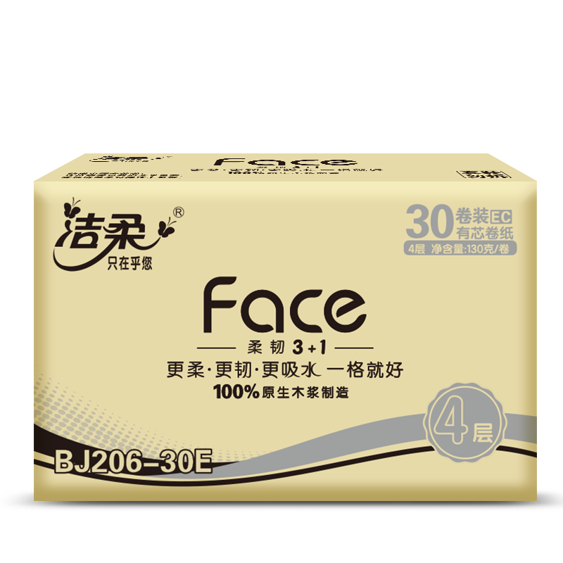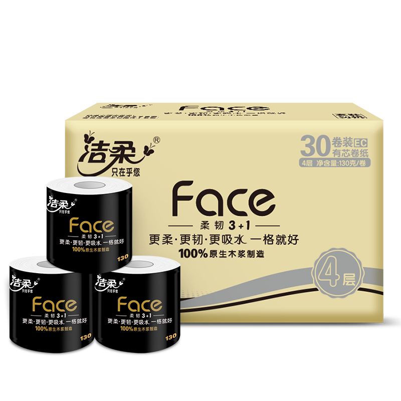 配置清单:BJ206-30E洁柔卫生纸(Face黑有芯)130g4层(30卷装)(电商专供)