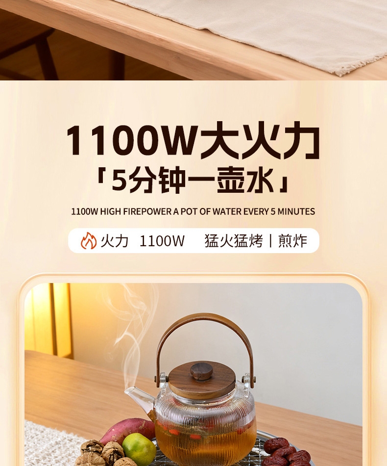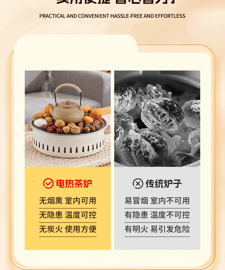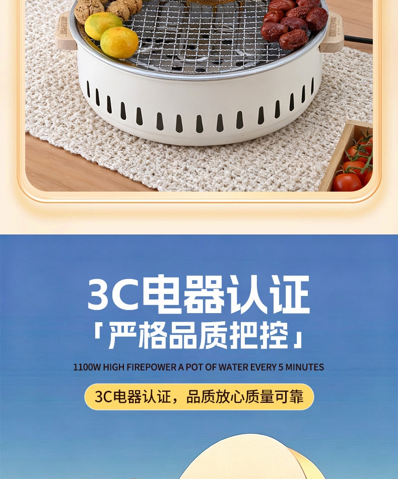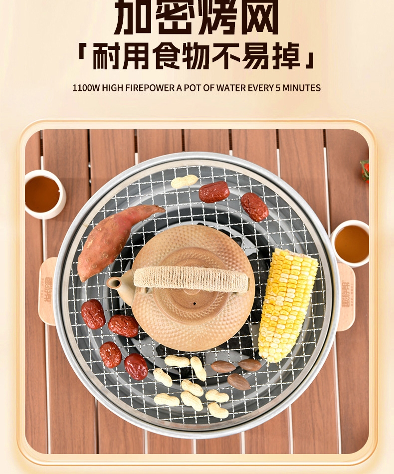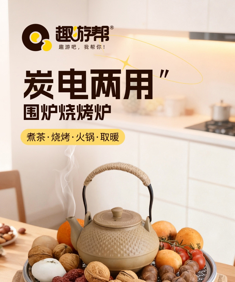可炭电两用围炉,适用多种场景;水油分离炭盆,使用更加安全;3C电器认证,品质放心质量可靠