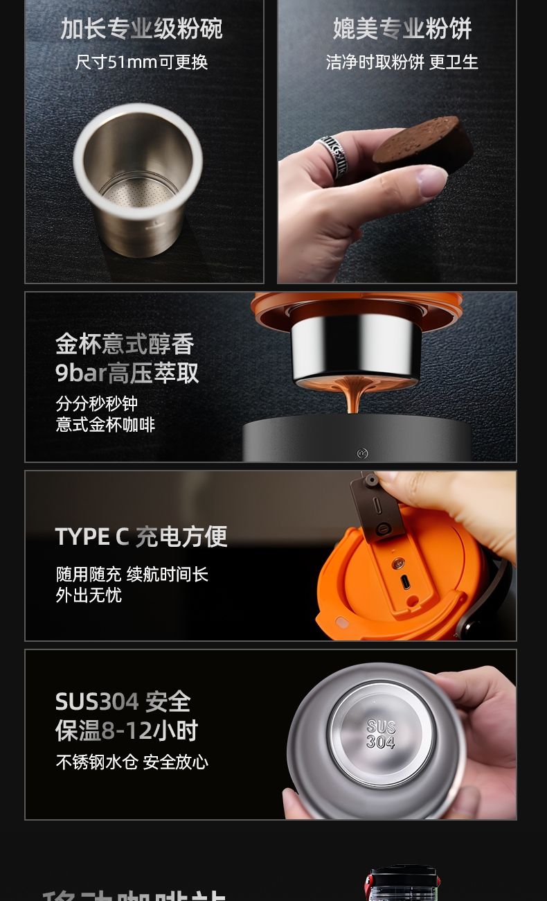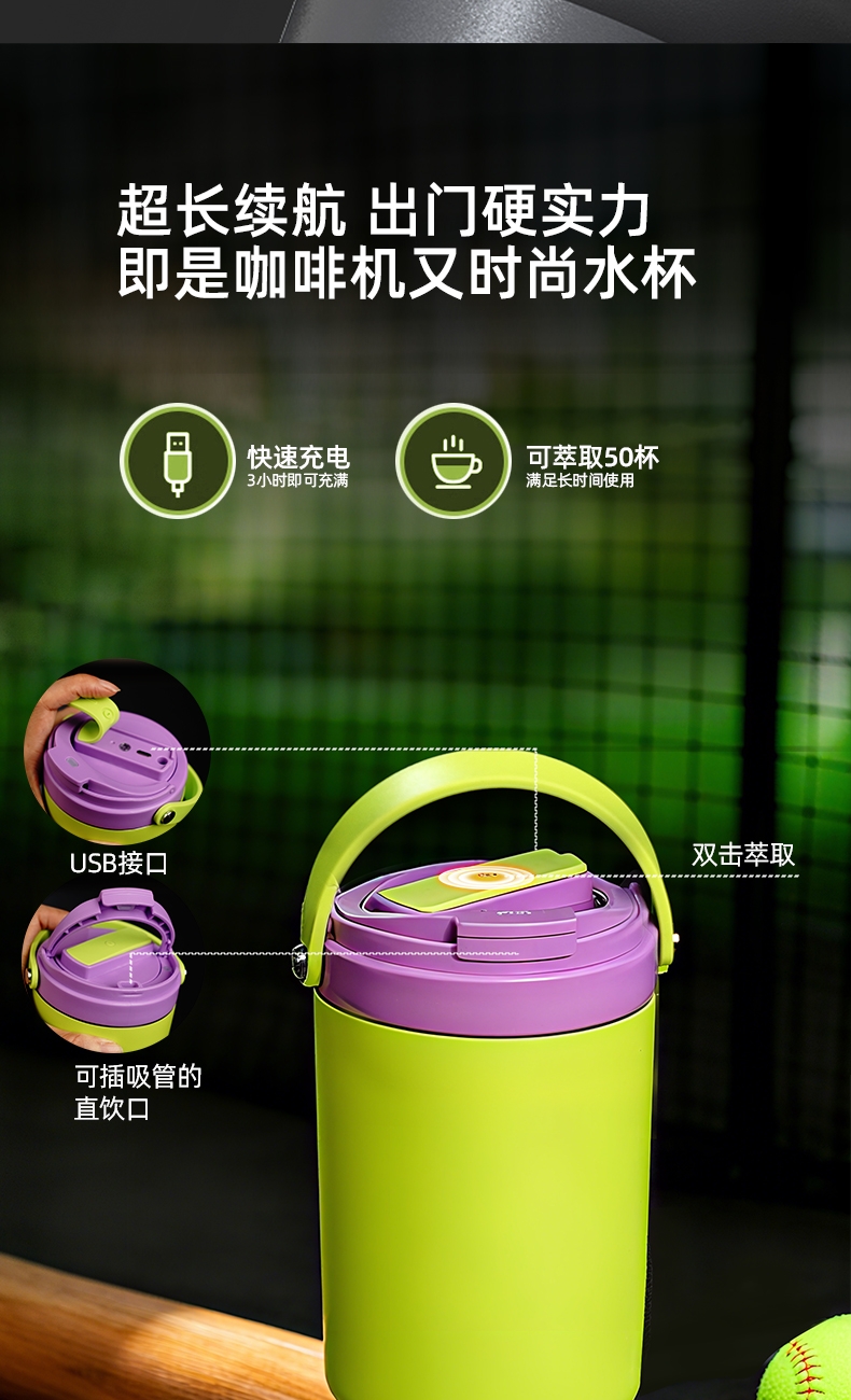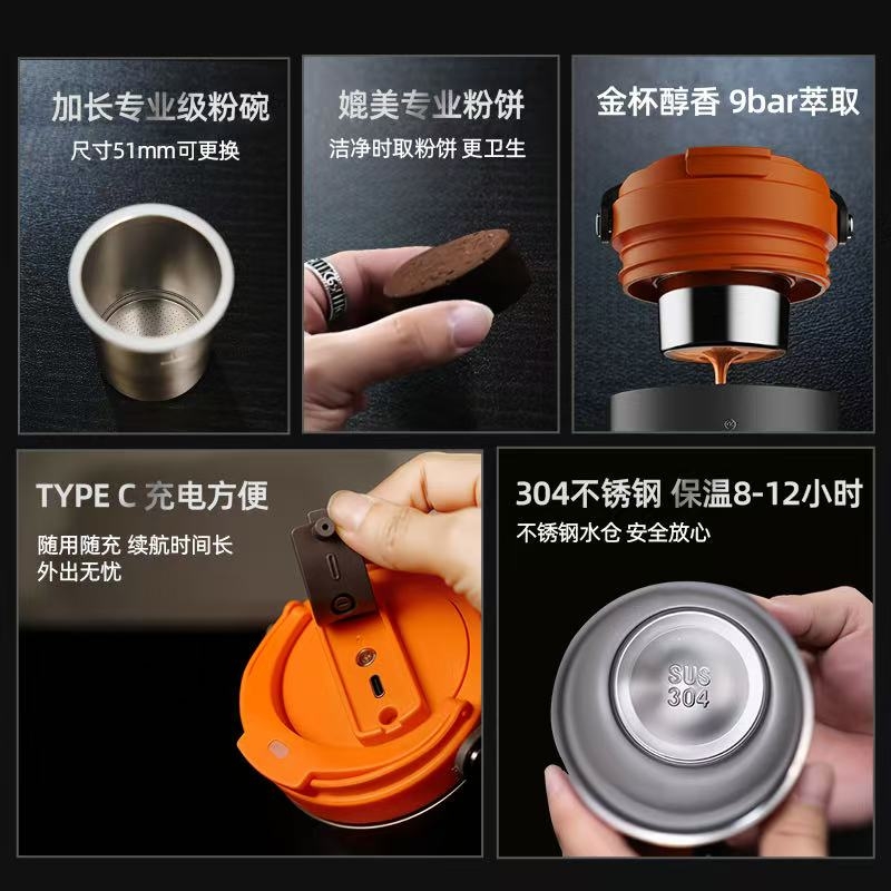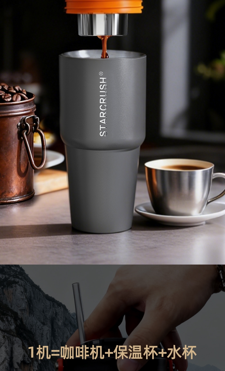 咖啡机+时尚保温杯+水杯,1台顶3台;超长续航,外出无忧;304不锈钢水仓,使用更安全放心