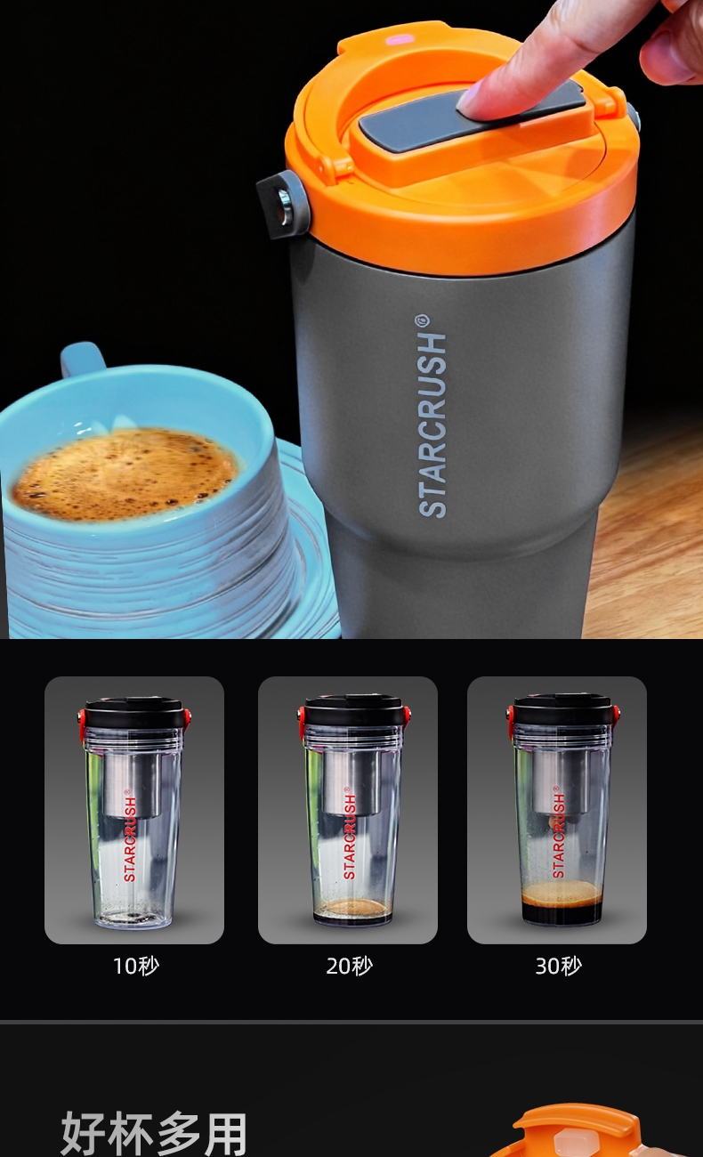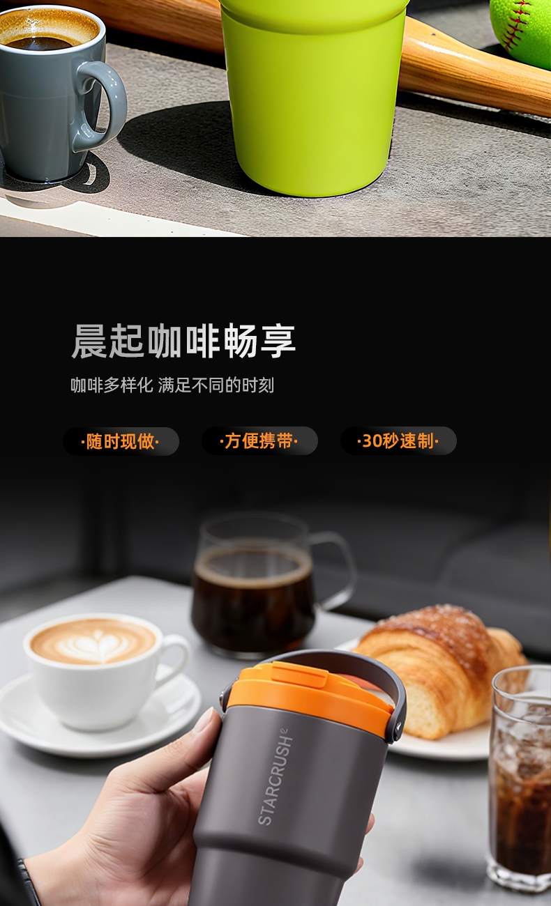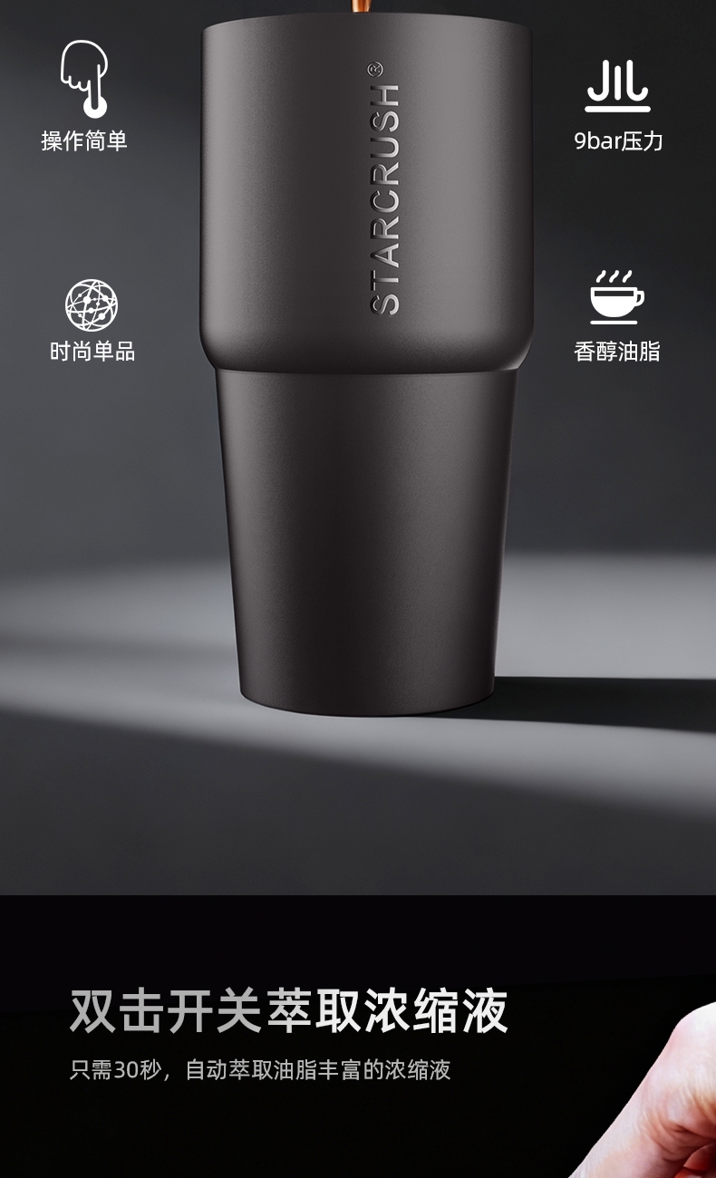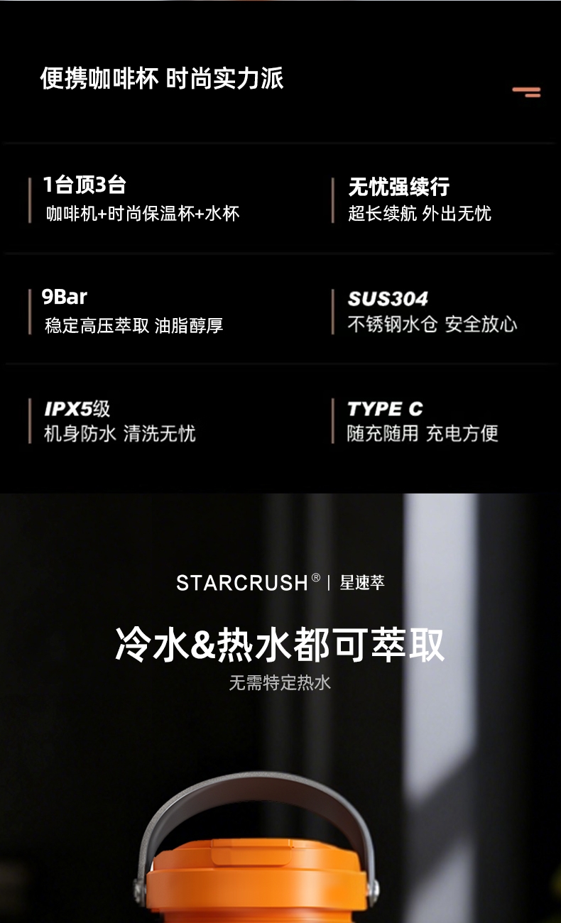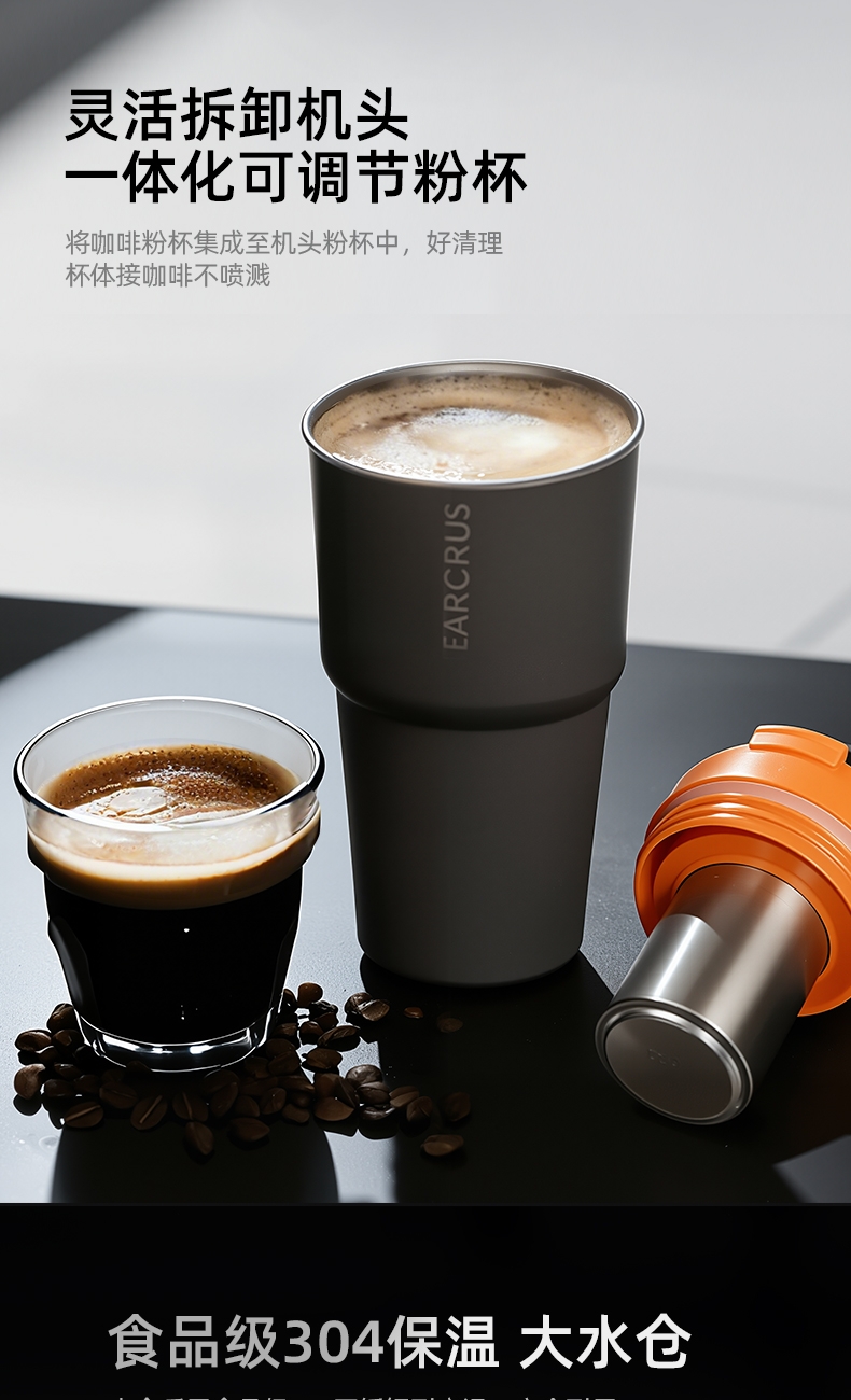 304不锈钢水仓,使用更安全放心;咖啡机+时尚保温杯+水杯,1台顶3台;超长续航,外出无忧