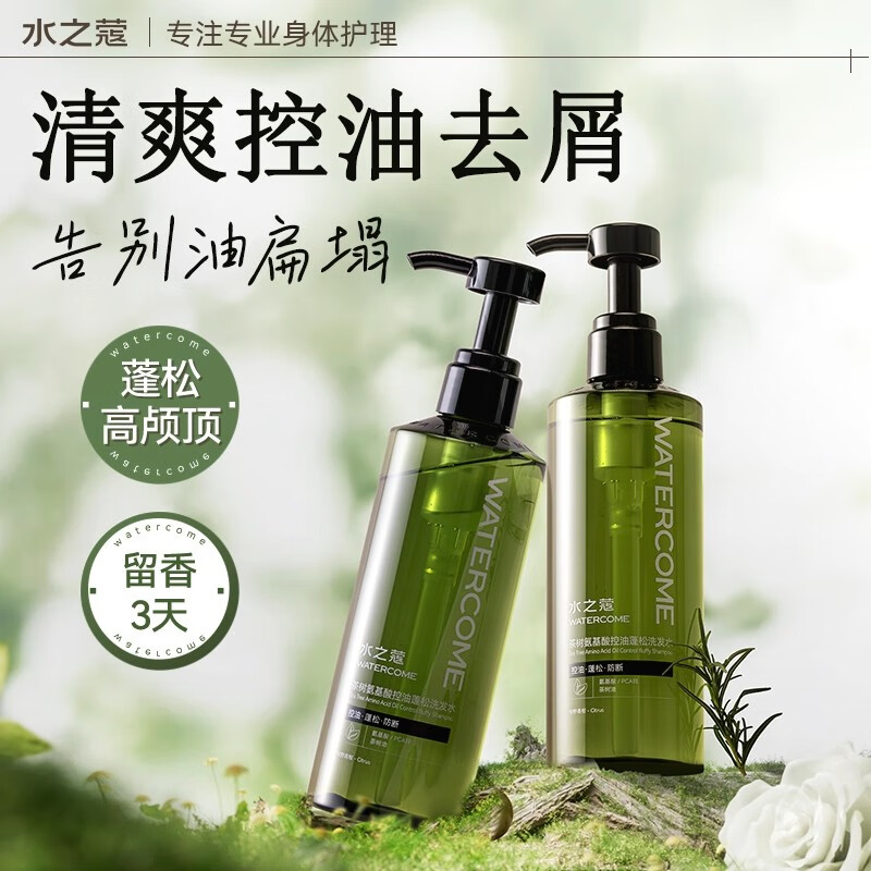 配置清单:水之蔻茶树氨基酸控油蓬松洗发水(绿野青柑)400ml+水之蔻水光柔顺护发素(青柑橘影)200ml
