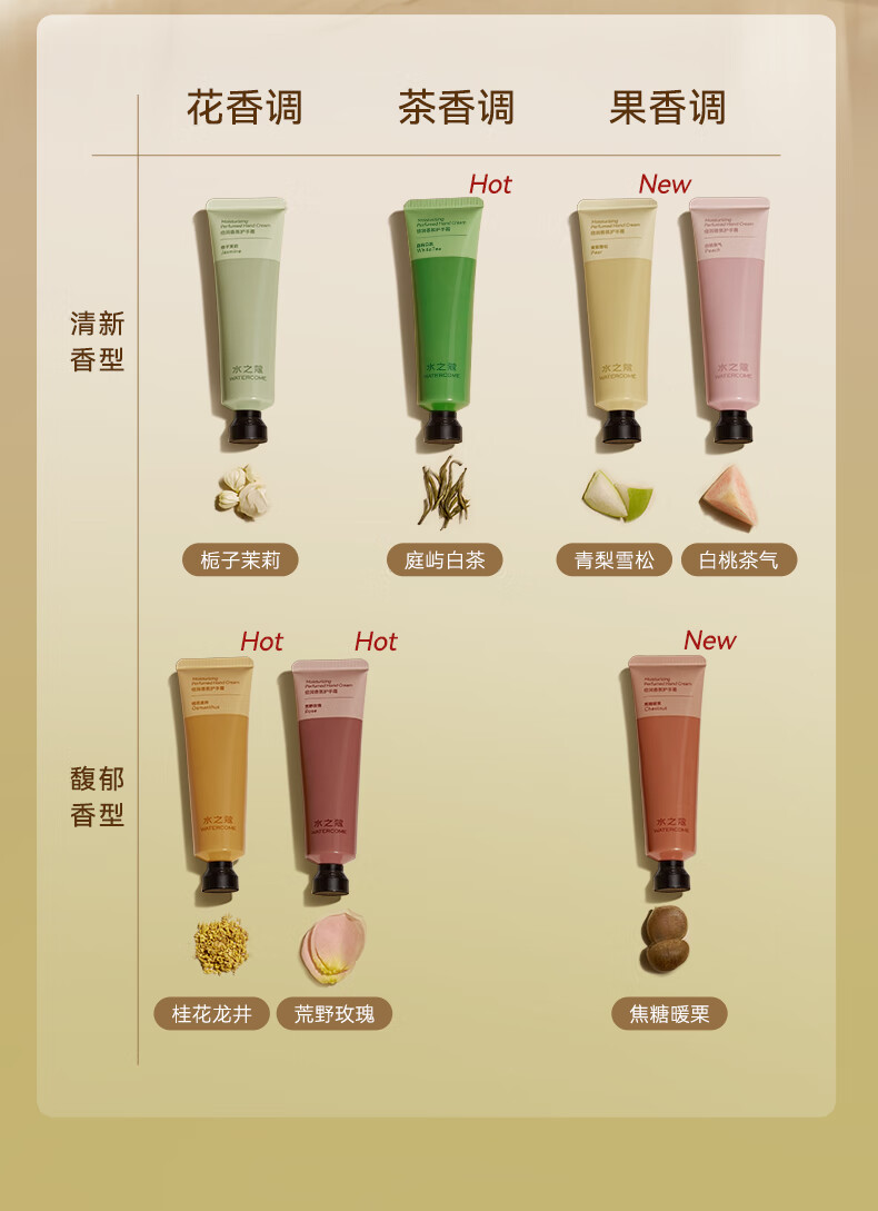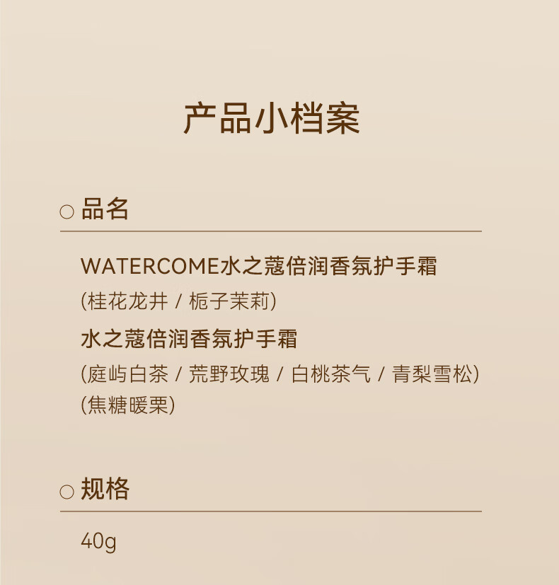 配置清单:水之蔻倍润香氛护手霜 焦糖暖栗 40g