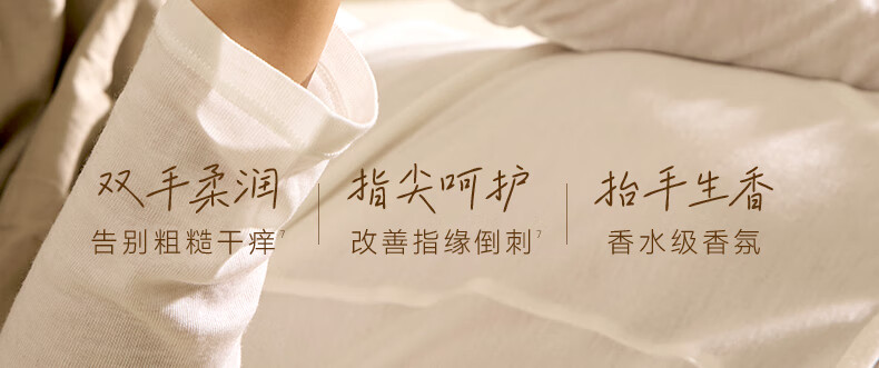 1支多效 手甲同养 随「手」穿香 感知指尖的柔润;将柔润和香味都揉进手心 轻松化解手部干燥「危肌」;手,是身体接触外界的载体更干燥易损,手部护理不容忽;特调香氛×13%面护级油脂;1支=滋润手膜+指缘油+固体香膏
