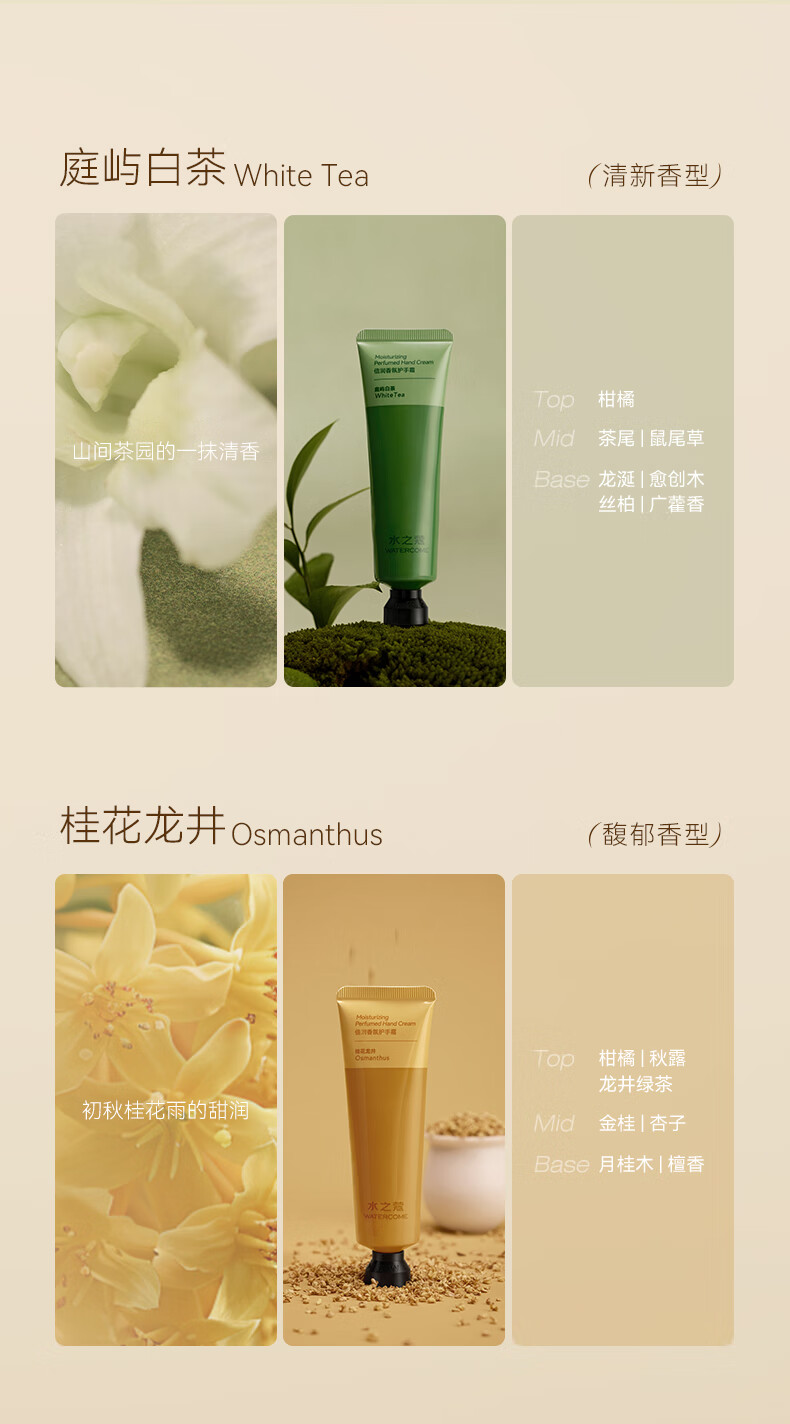 配置清单:水之蔻倍润香氛护手霜 白桃茶气 40g