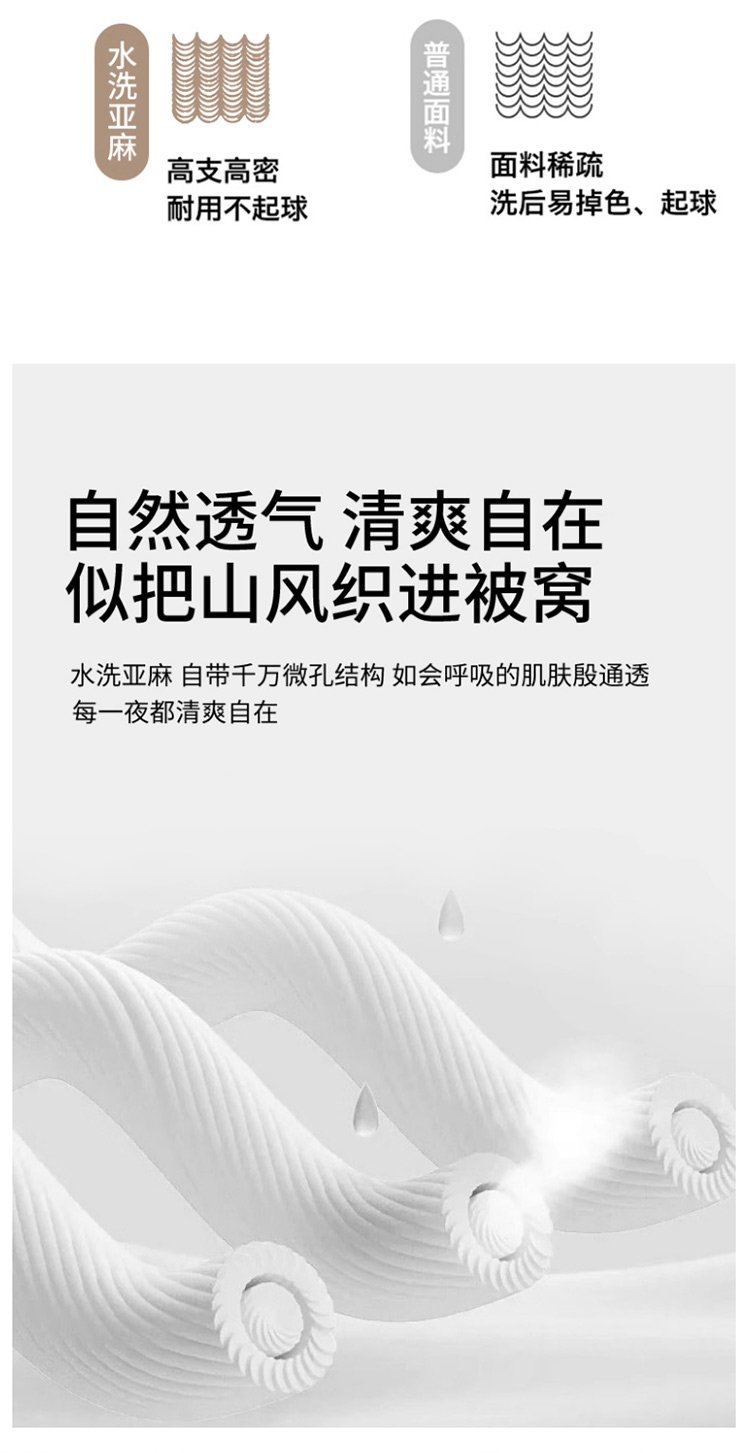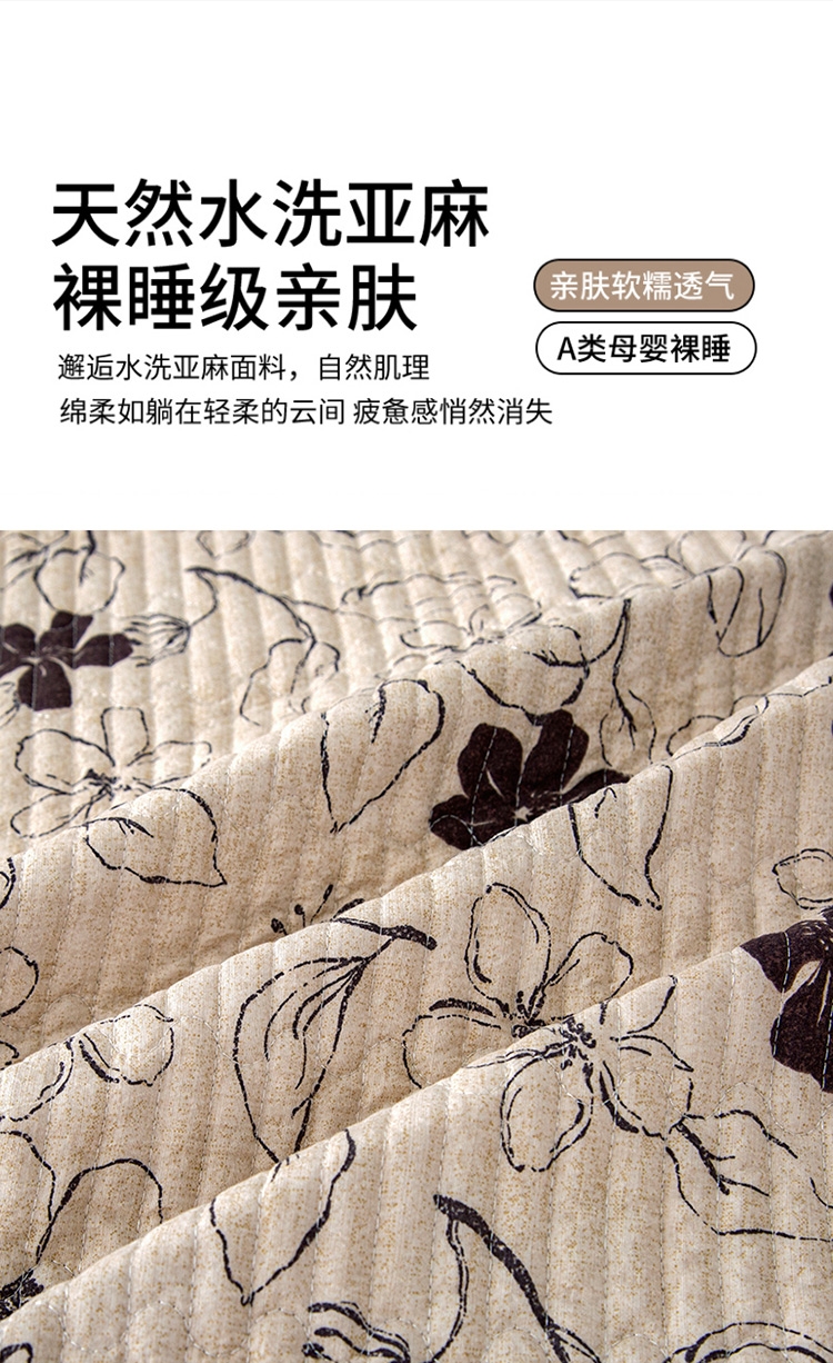 自然深睡 生活美学 A类水洗亚麻床盖可铺可盖多功能;邂逅水洗亚麻面料,自然肌理绵柔如躺在轻柔的云间 ;整张超柔羽丝棉填充设计蓬松柔软舒适透气 适合裸睡