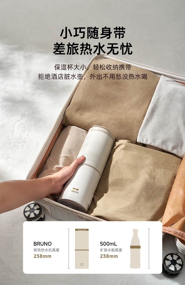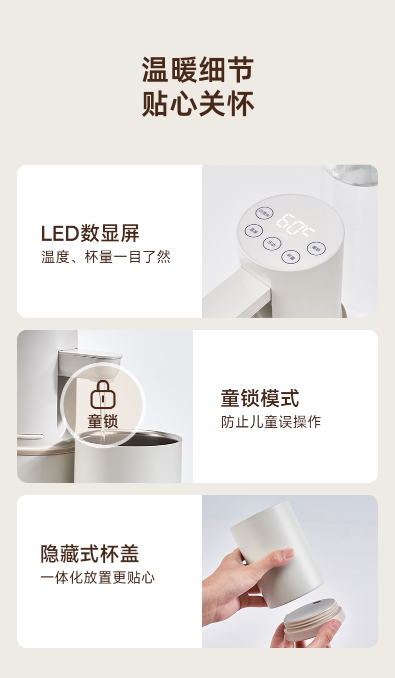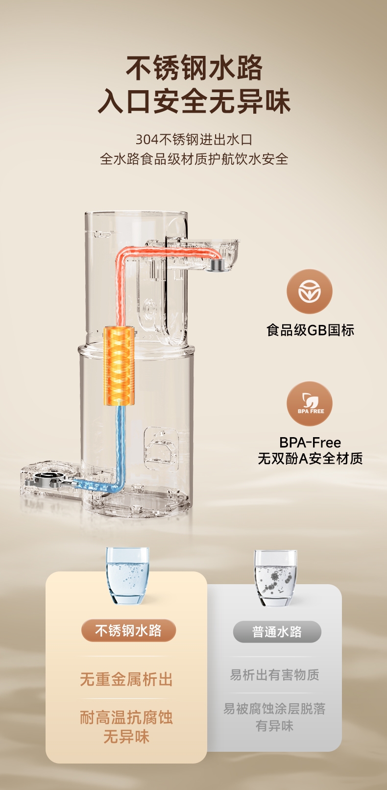 进、出水口均为304不锈钢材质 ,安全性高、更卫生;预设4档水温,3档水量,3秒即热,适温畅饮;全场景适配:覆盖差旅、户外、家庭办公,一机多用
