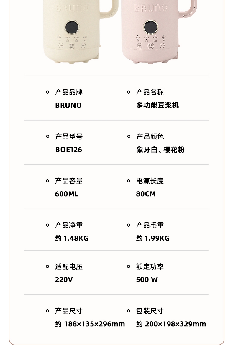 BRUNO 第二代豆浆机0.6LBOE126-IV