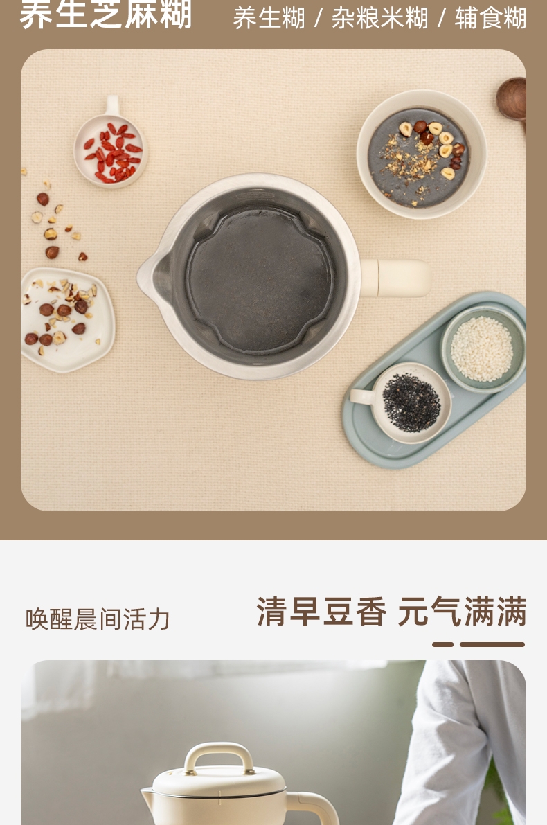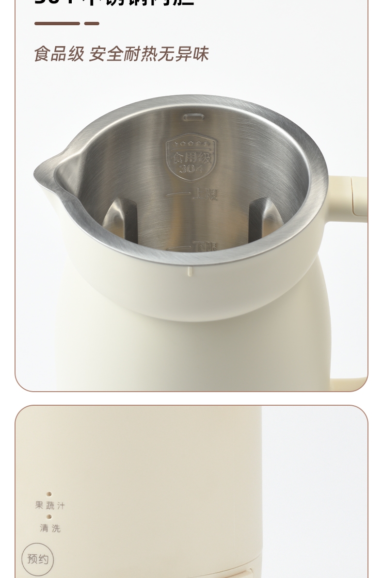 11大自动菜单, 一键全能 ,一键自动清洗; 12小时预约, 2小时保温60摄氏度(60度不滋;独家升级镀钛刀头,坚硬耐磨 • 实现打冰,制作冰饮
