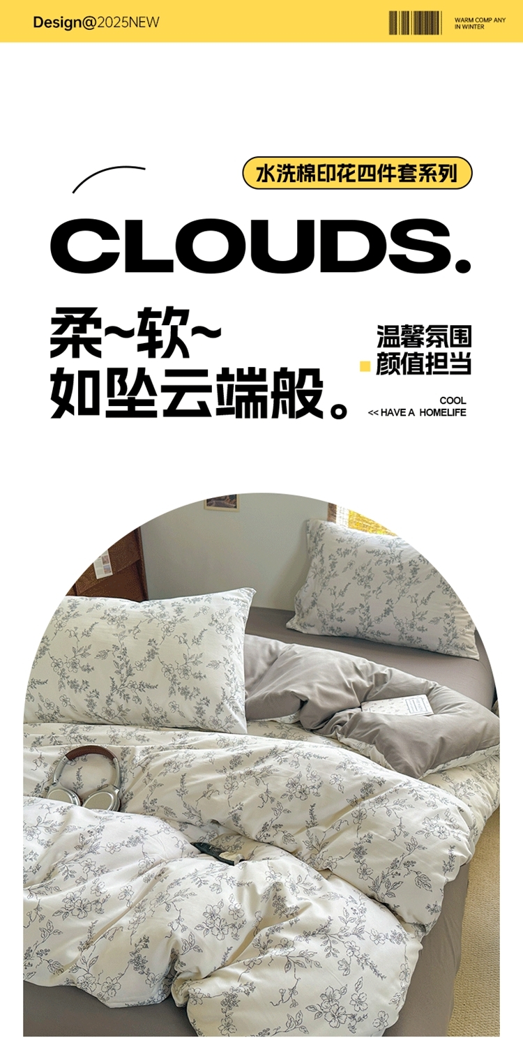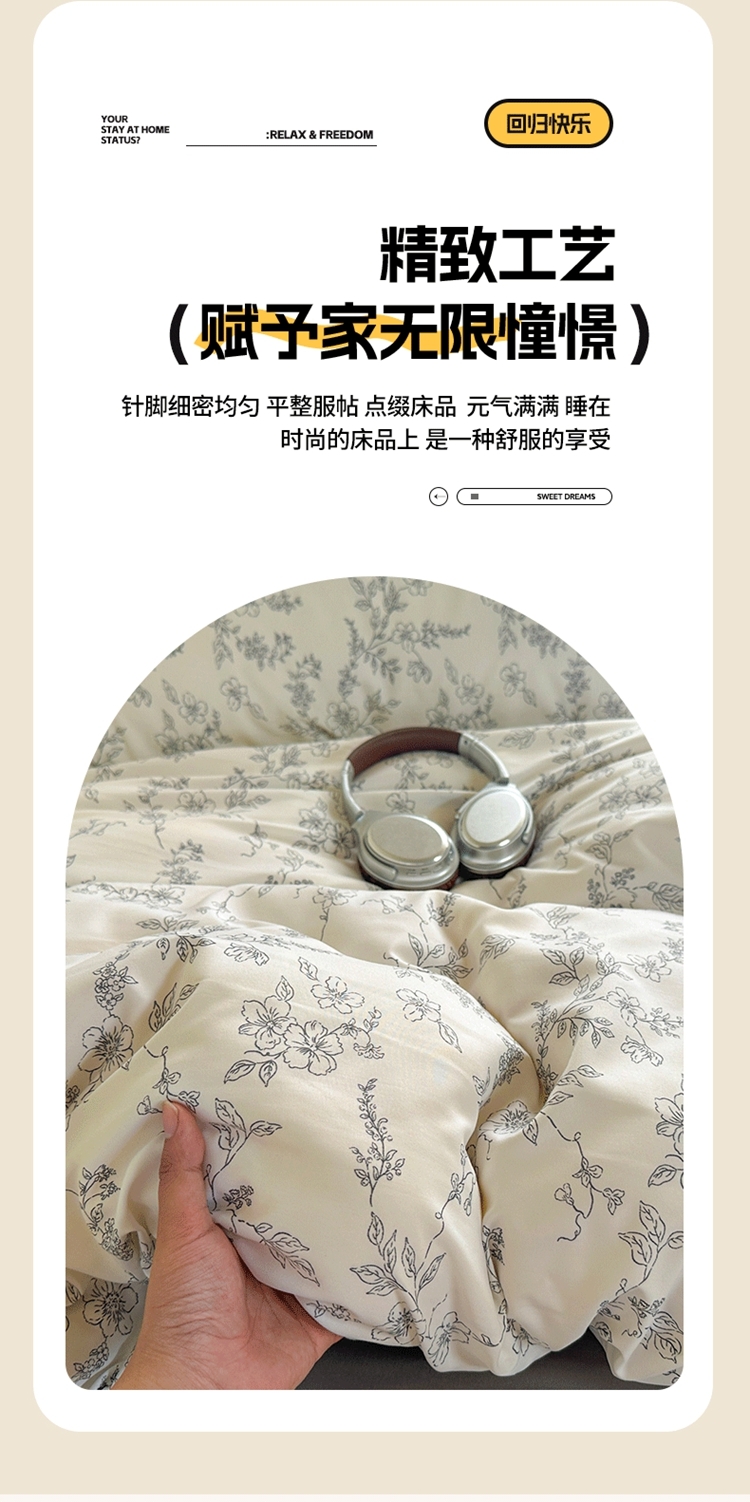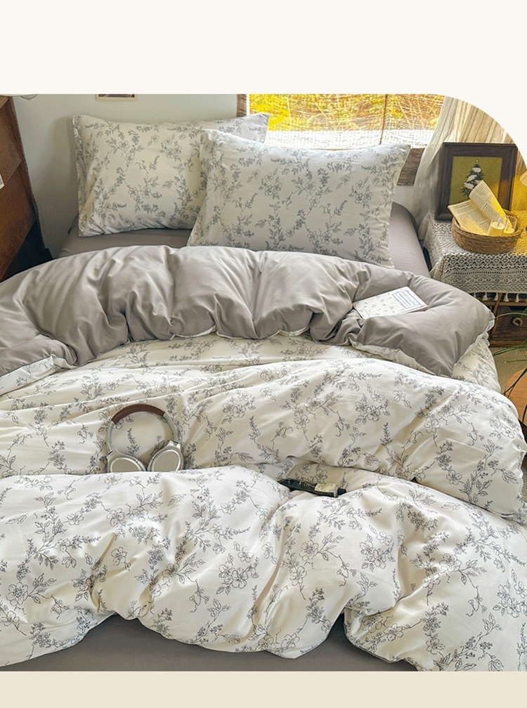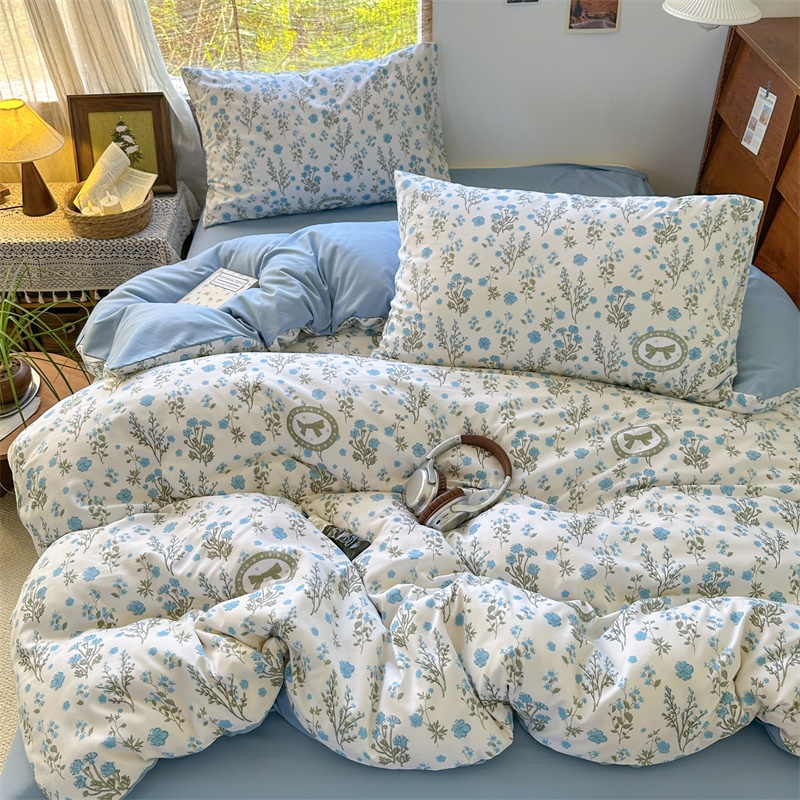 花花公子 小清新碎花双拼水柔棉四件套家纺PLAYBOY-157