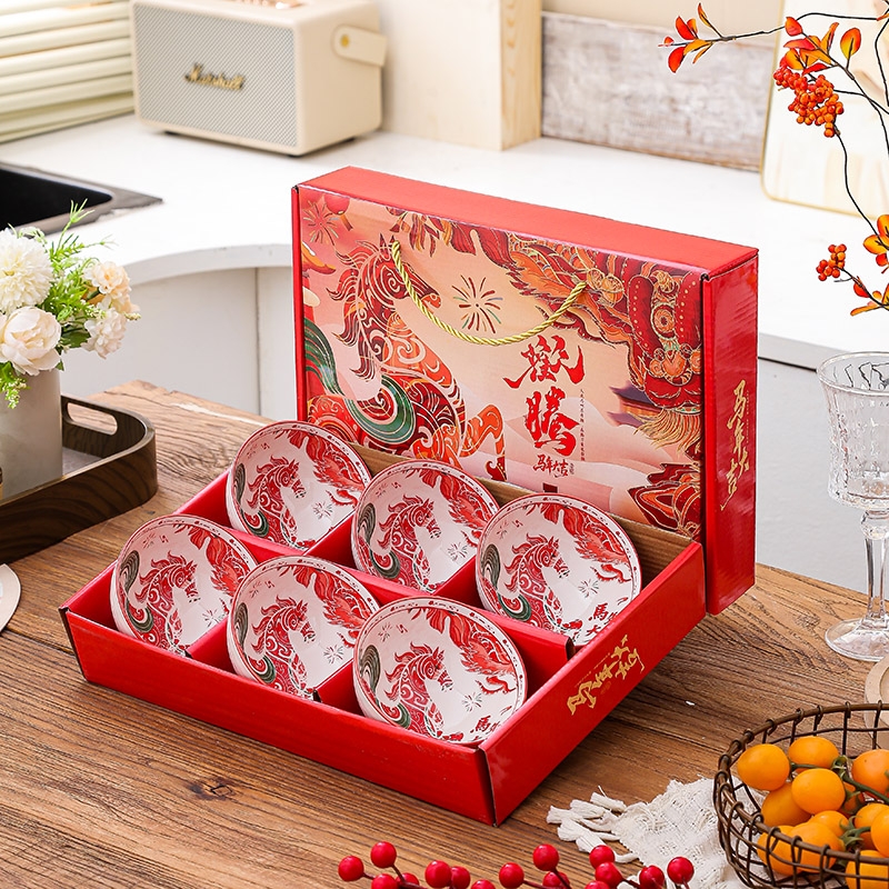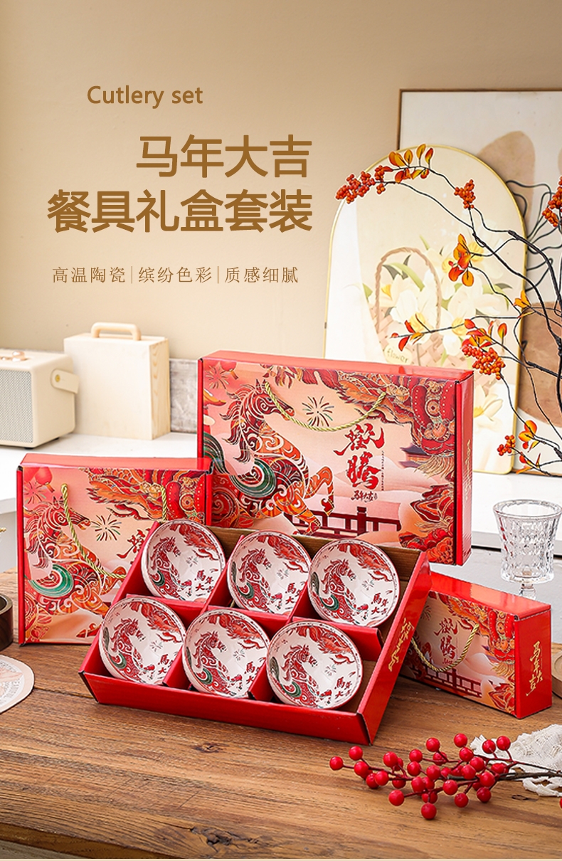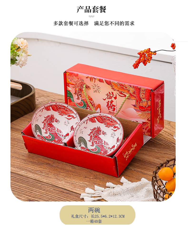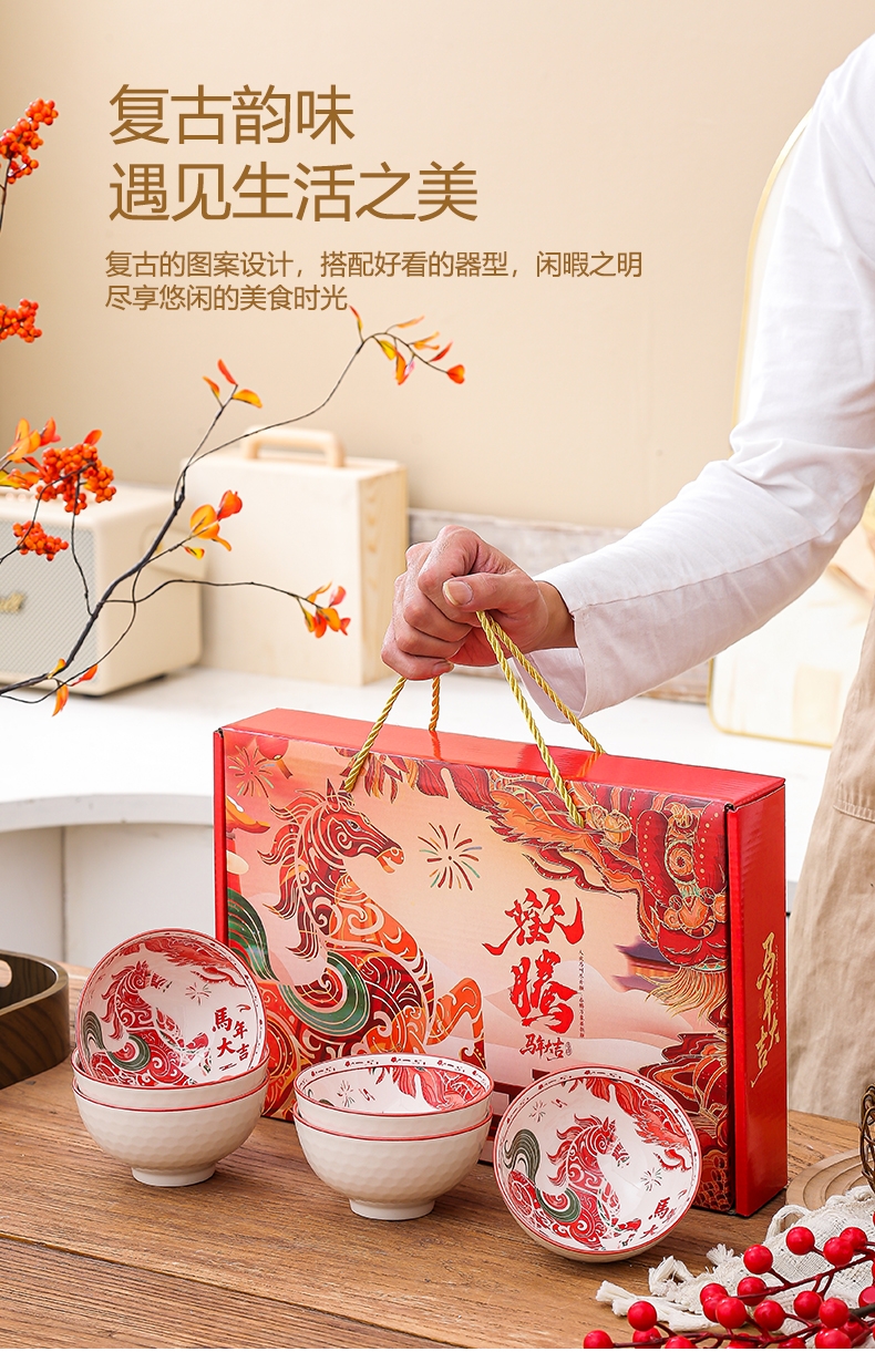顺聪 马年大吉陶瓷碗餐具礼品套装