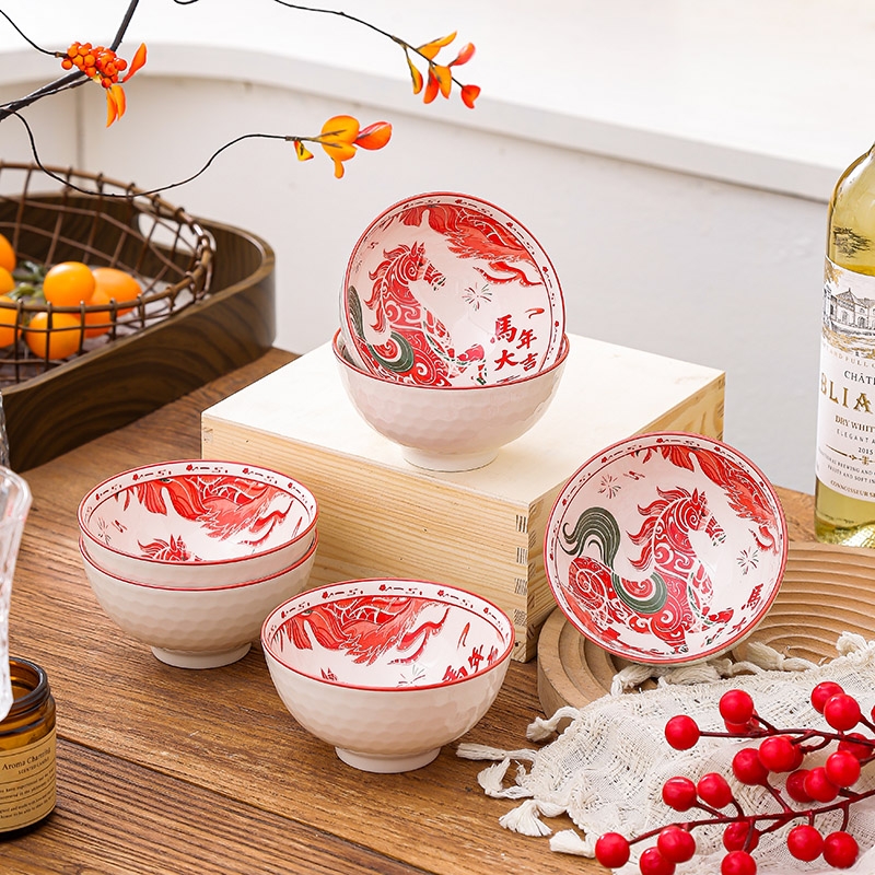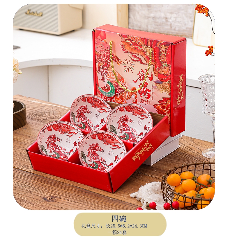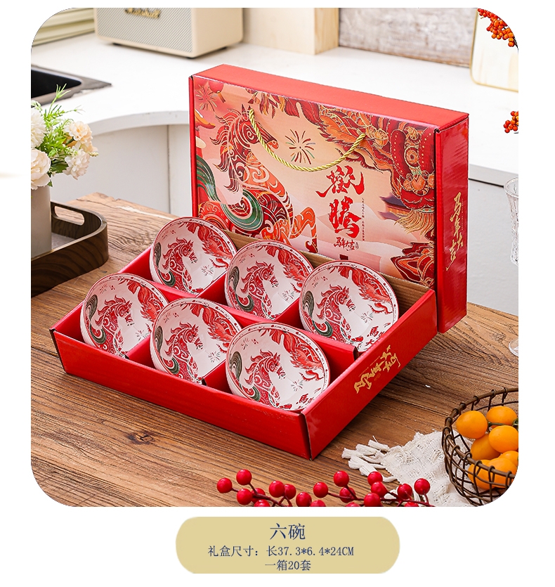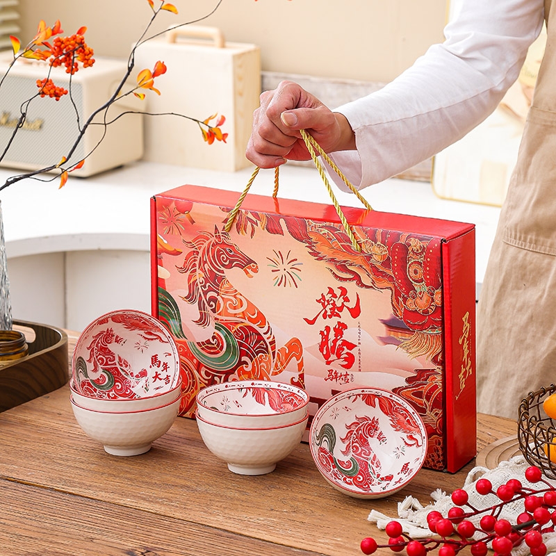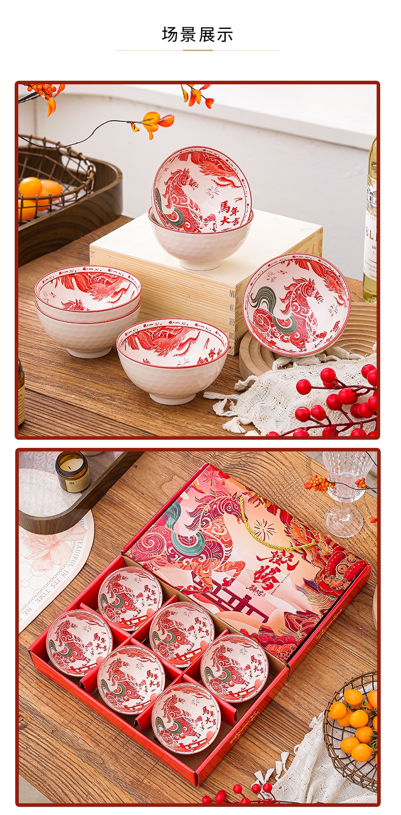 顺聪 马年大吉陶瓷碗餐具礼品套装