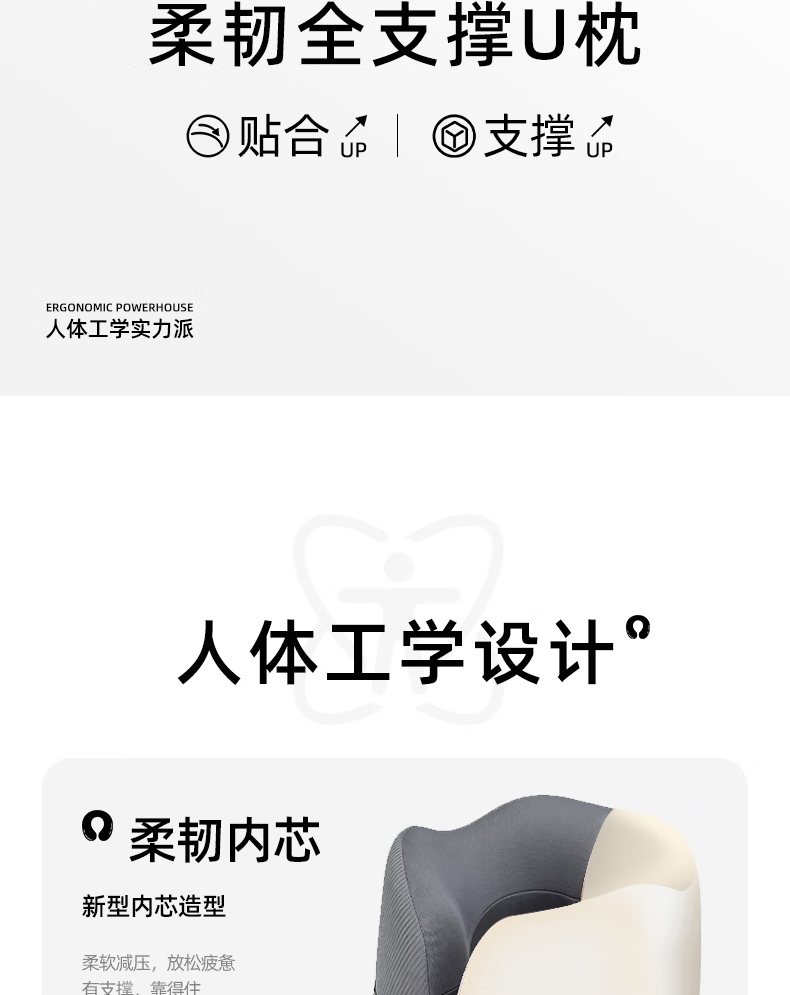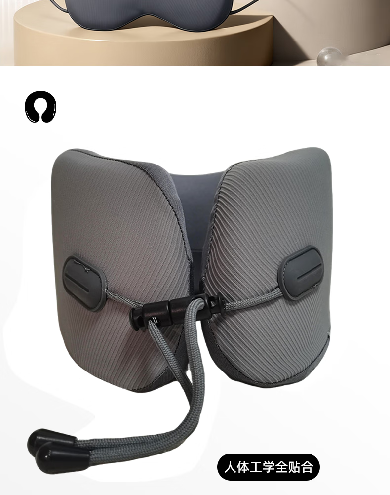 护颈枕:360度环绕分区承托,全面扶托头颈肩;适用不同场合,居家休闲,办公工作,出差旅行携带方便;护眼罩:人体工程学设计,双面温凉感,便携收纳