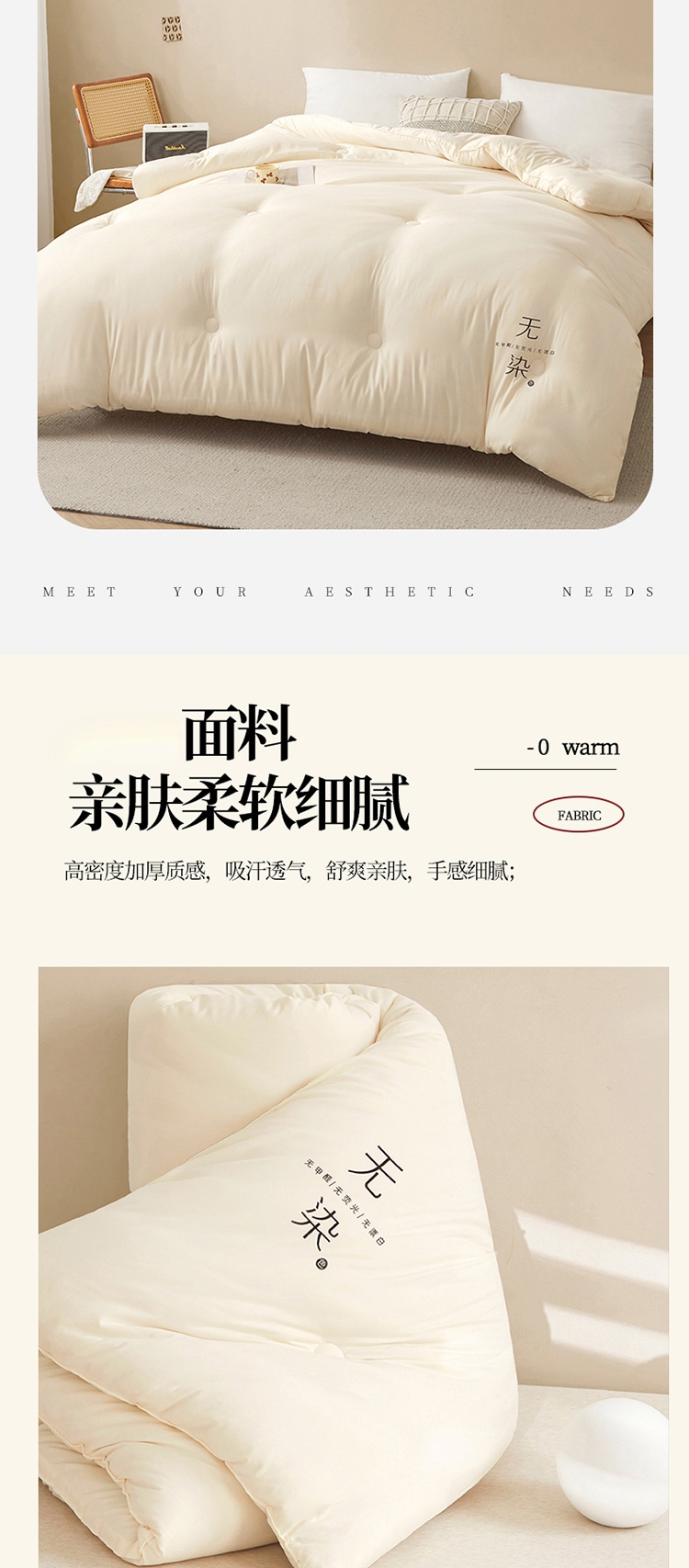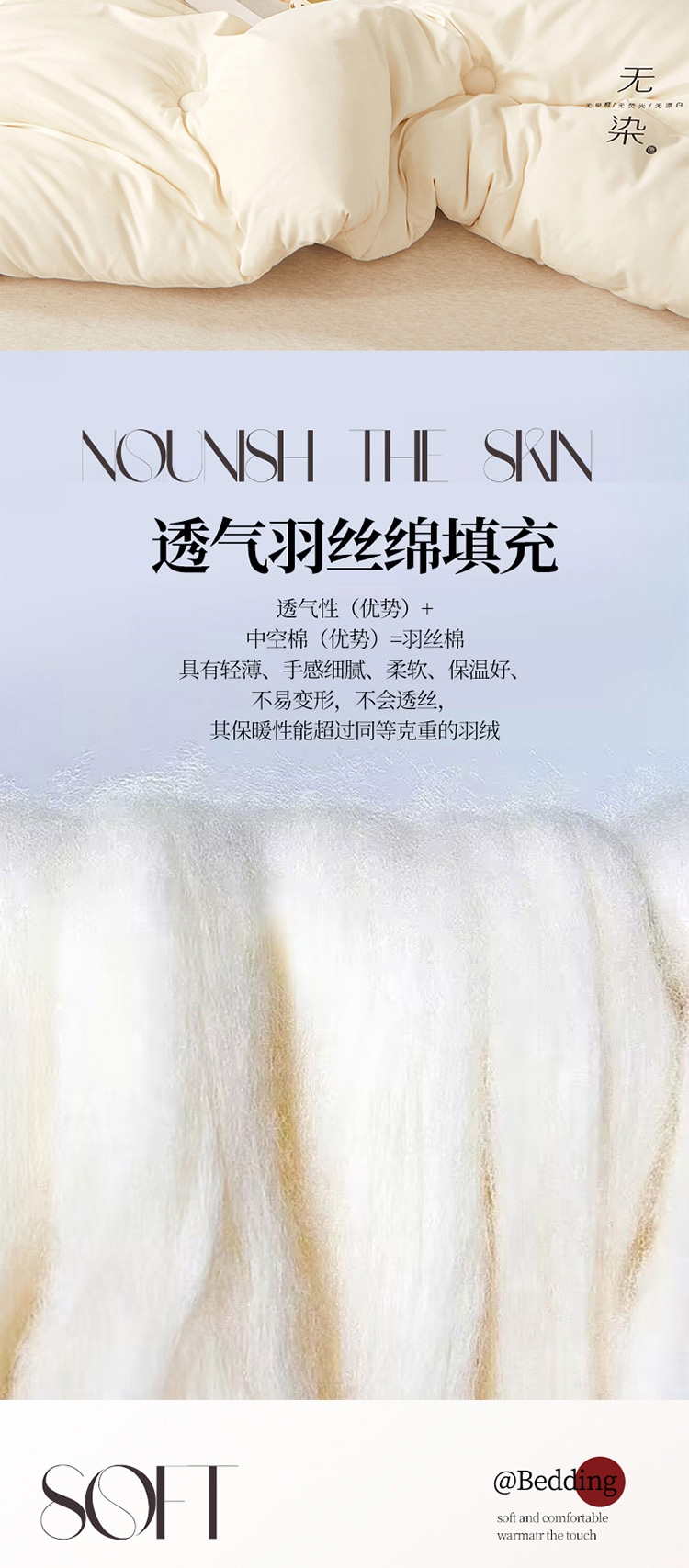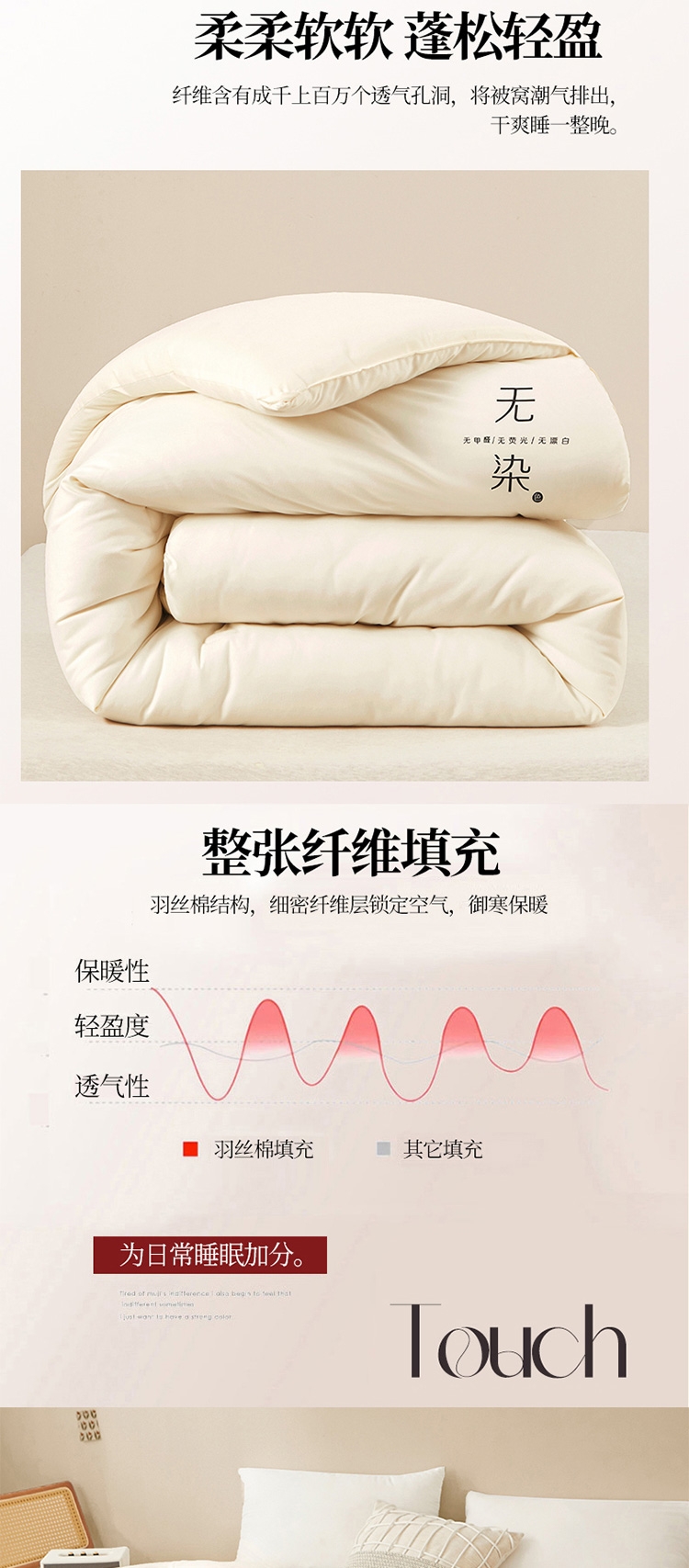 纳米抗菌纤维填充,饱满蓬松,透气好,被芯轻如浮云,;面料采用优质立体压纹面料,能有效提升面料的高级感,;立体绗缝,锁定纤维,不易变形结团,热能储存,蓬松柔