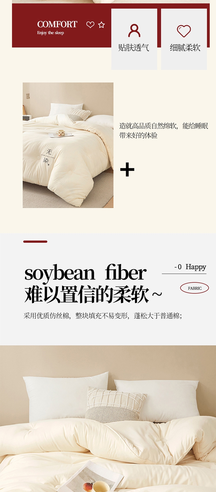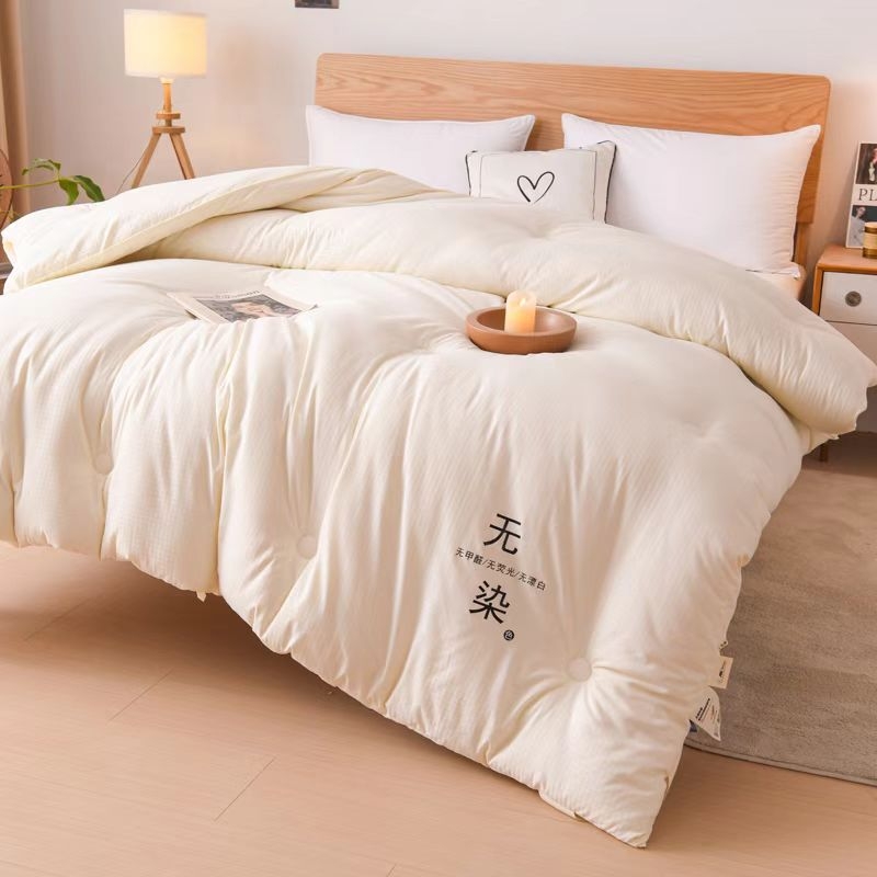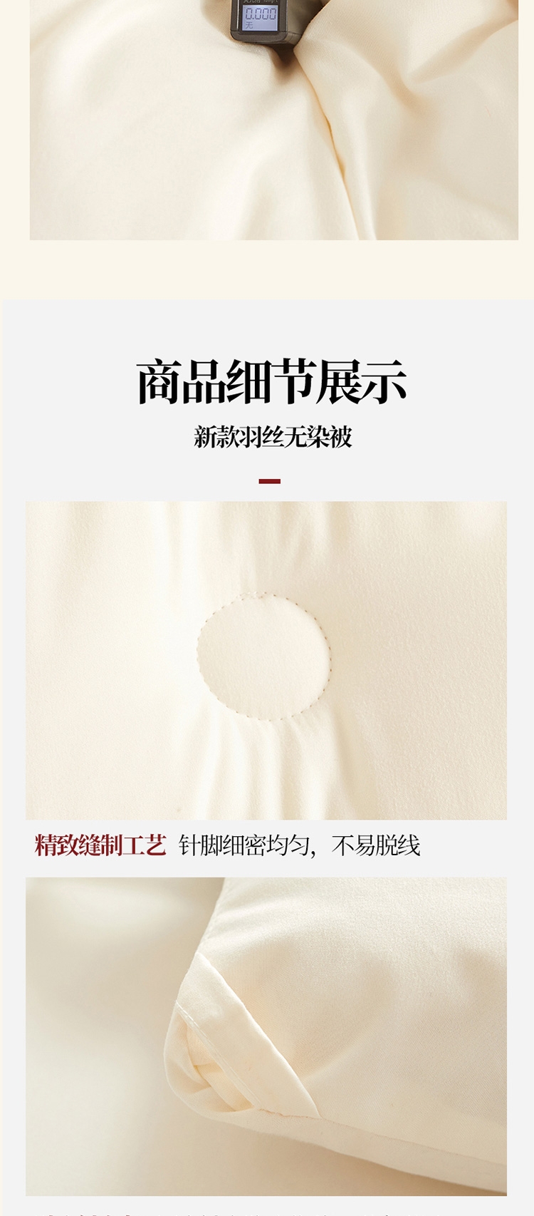纳米抗菌纤维填充,饱满蓬松,透气好,被芯轻如浮云,;面料采用优质立体压纹面料,能有效提升面料的高级感,;立体绗缝,锁定纤维,不易变形结团,热能储存,蓬松柔