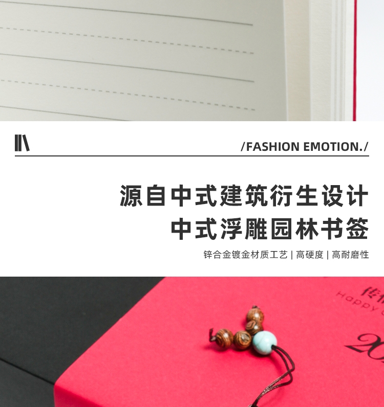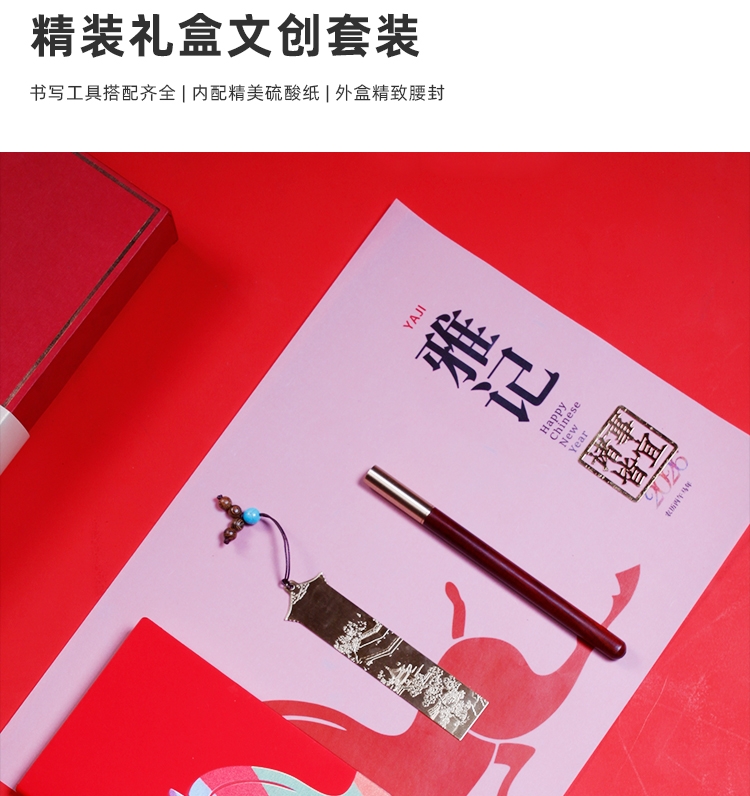 选用优选皮革 | 精工细作 | 丰富多彩印刷效果;实木笔身 | 黄铜笔帽笔头 | 木质天然纹理;祝福文字书签 精致雕刻镂空工艺;源自中式建筑衍生设计 中式浮雕园林书签;书写工具搭配齐全 | 内配精美硫酸纸 | 外盒精致
