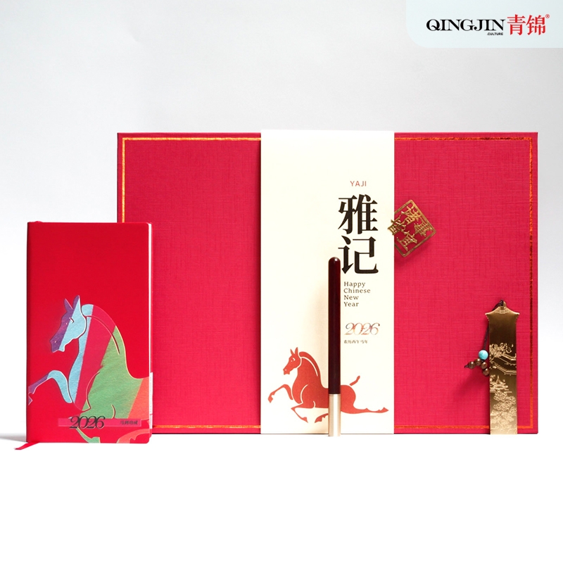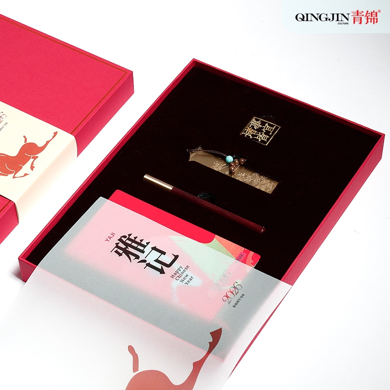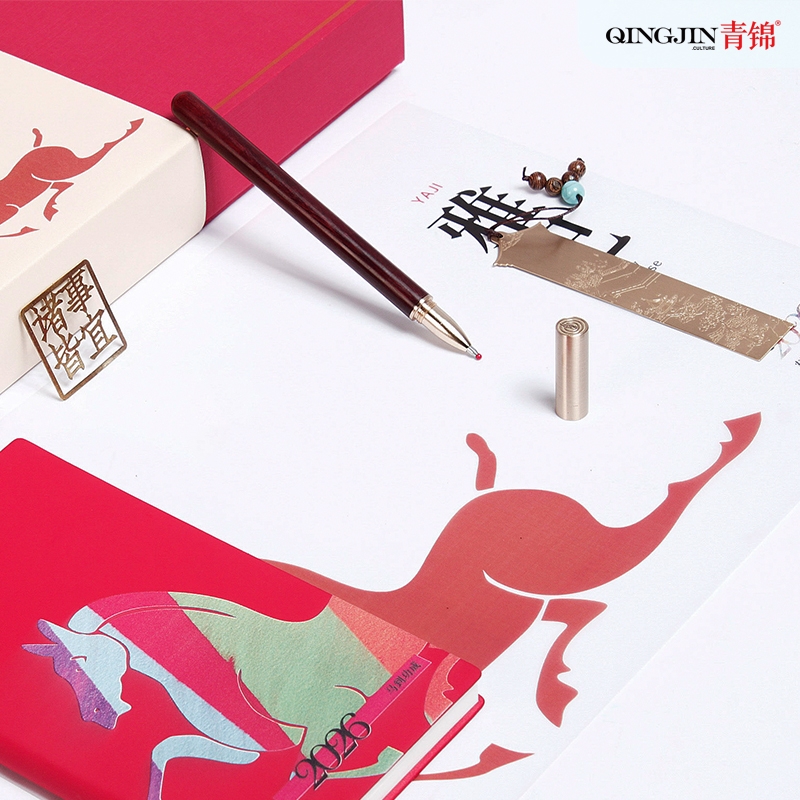 青锦 彩印笔记本实木签字笔书签书夹文创礼盒