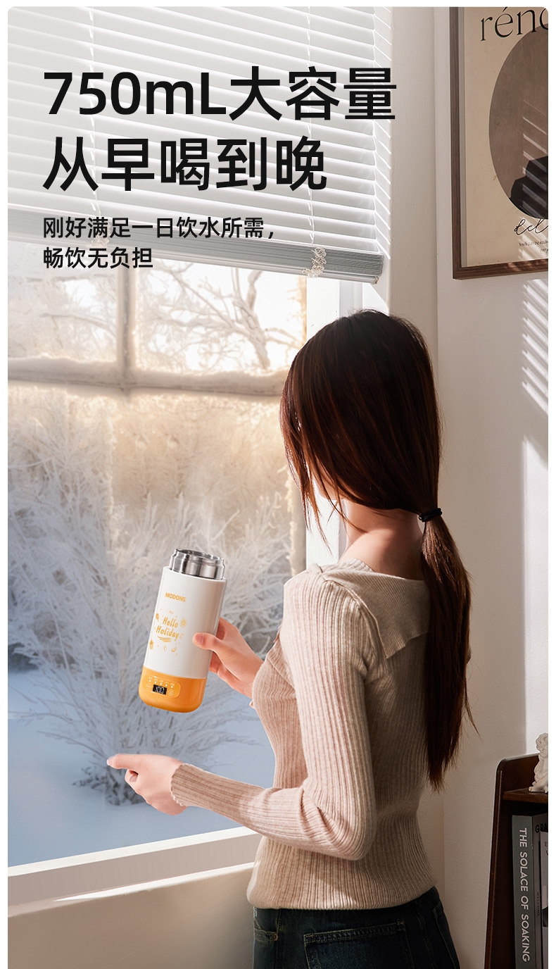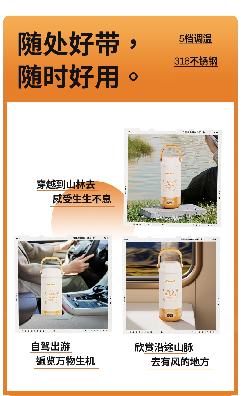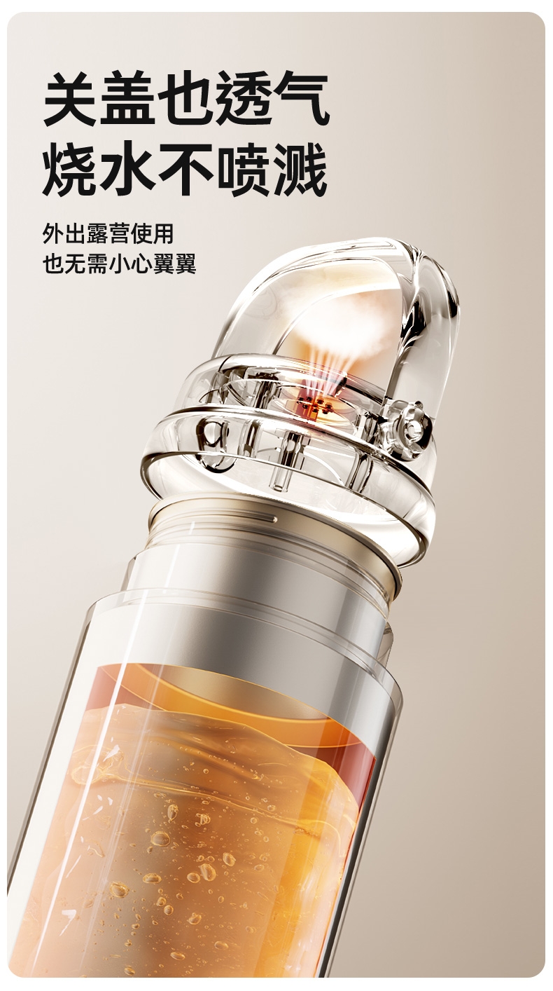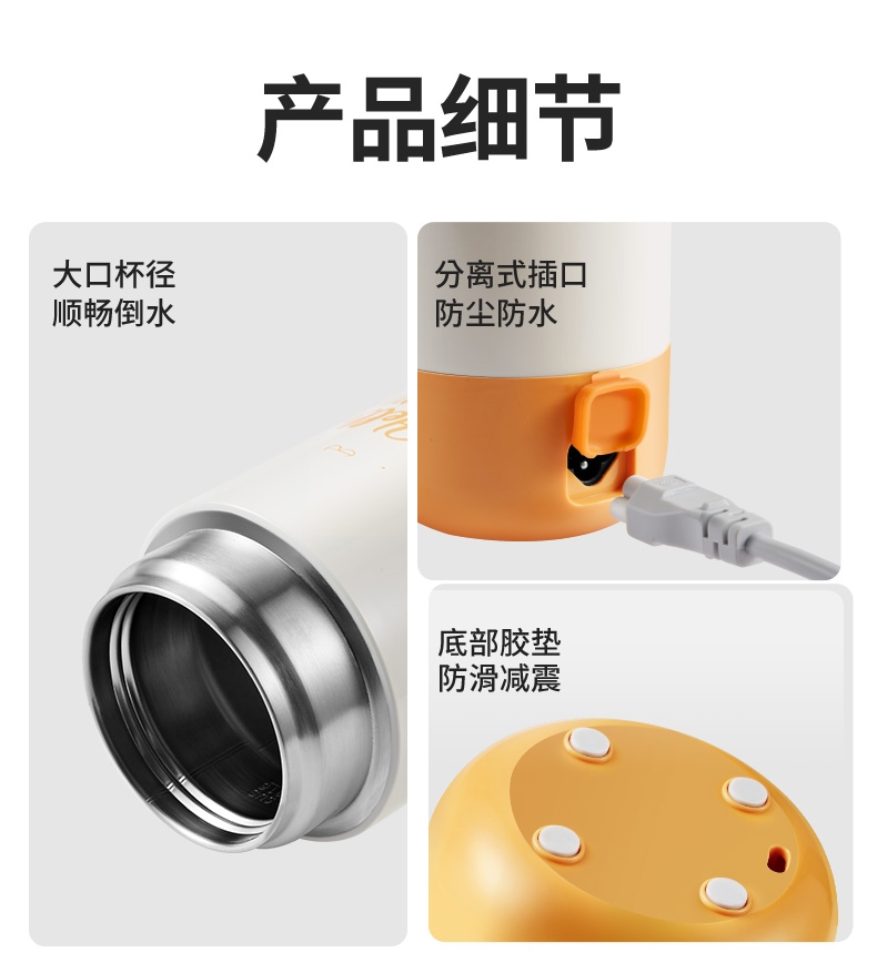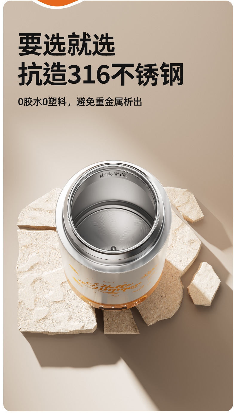 316不锈钢内胆,无异味 易清洗;外层防烫防滑,内层不绣钢锁温;关盖烧水,完全不外溢