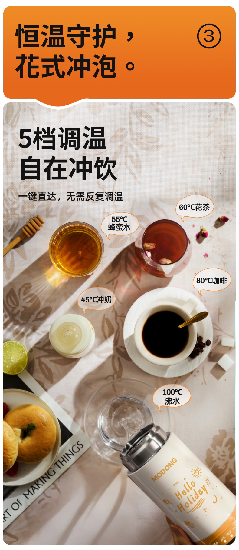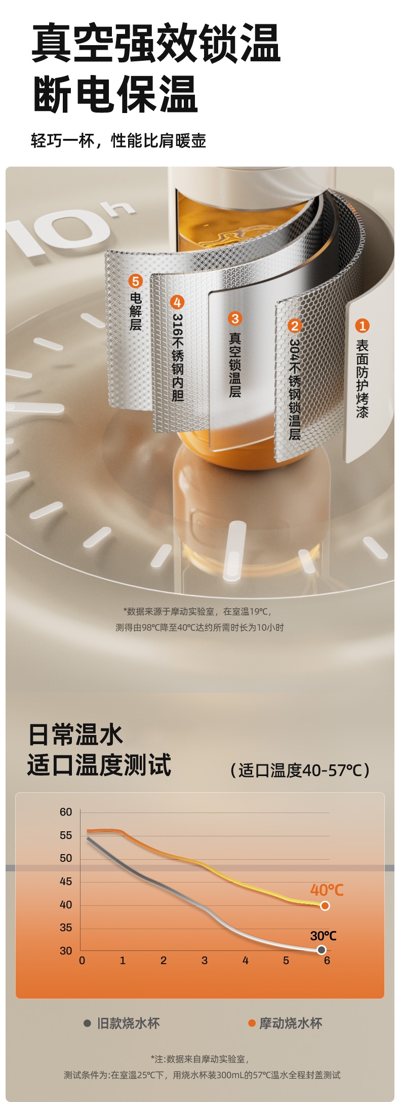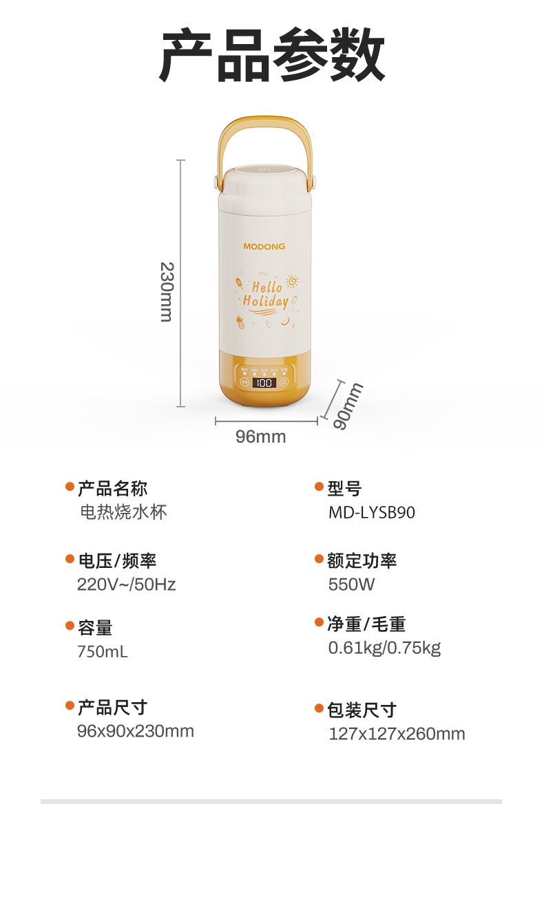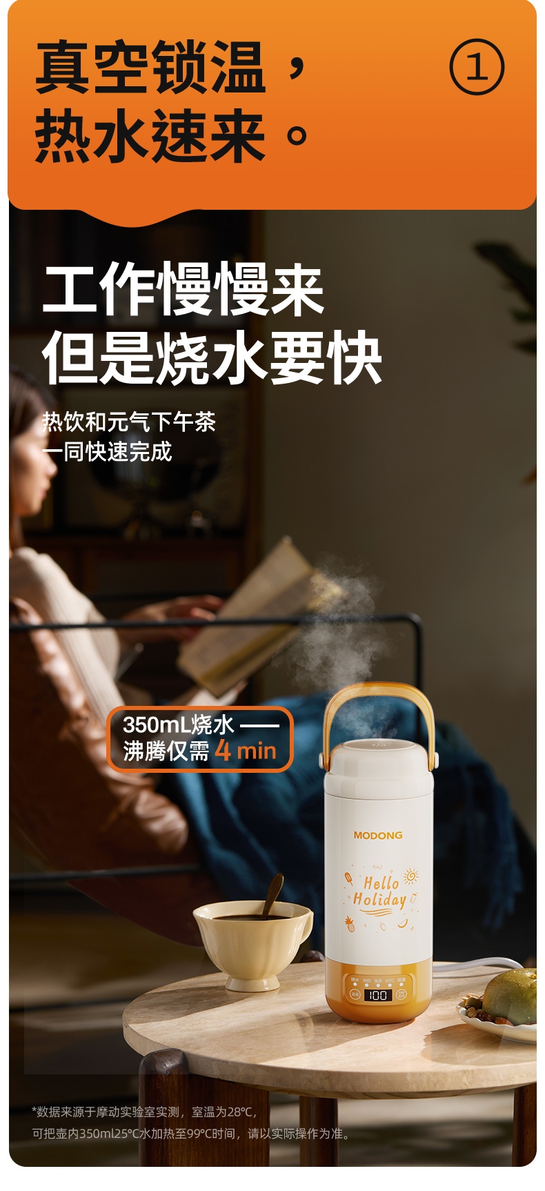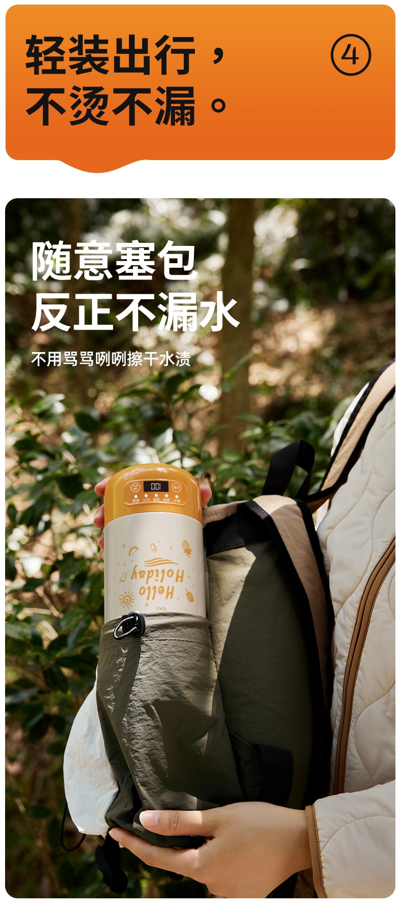 316不锈钢内胆,无异味 易清洗;外层防烫防滑,内层不绣钢锁温;关盖烧水,完全不外溢
