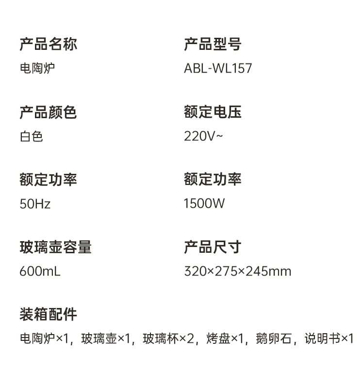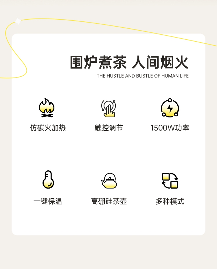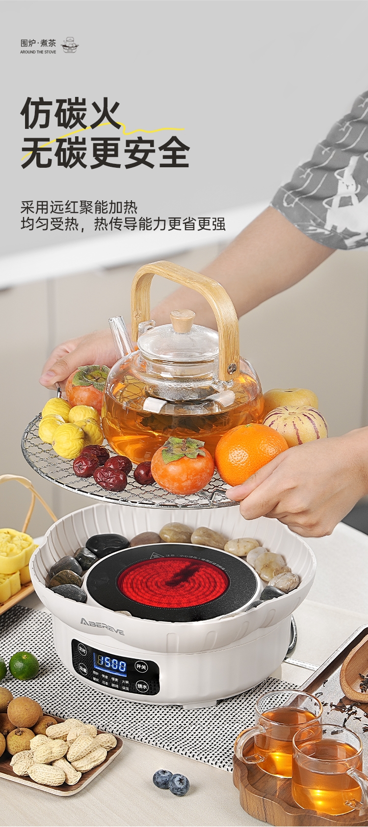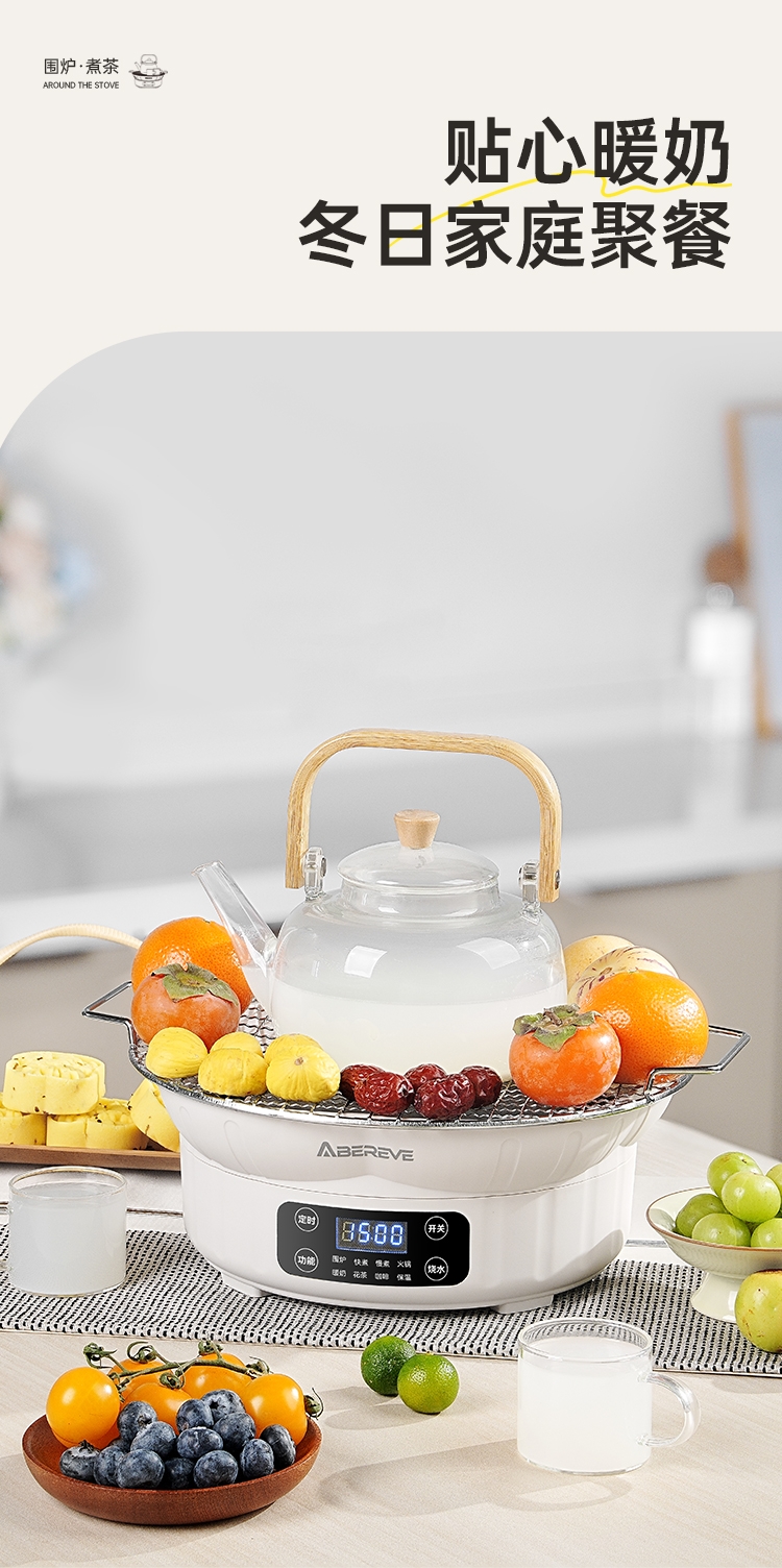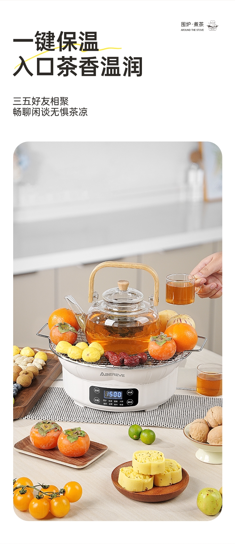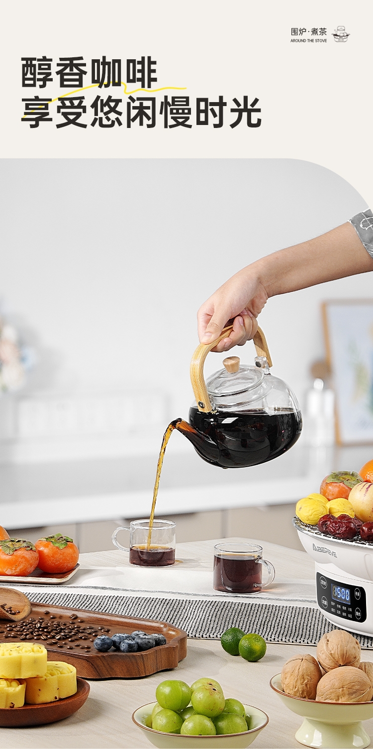 四位触控数码屏清晰显示实时温度、火力;一键启动快速响应+八档火力精准适配;自带烤架,玻璃茶壶配双杯,品质生活随时享