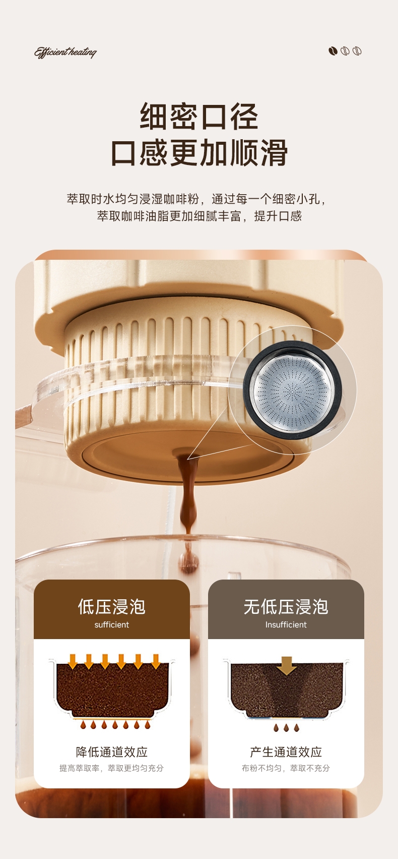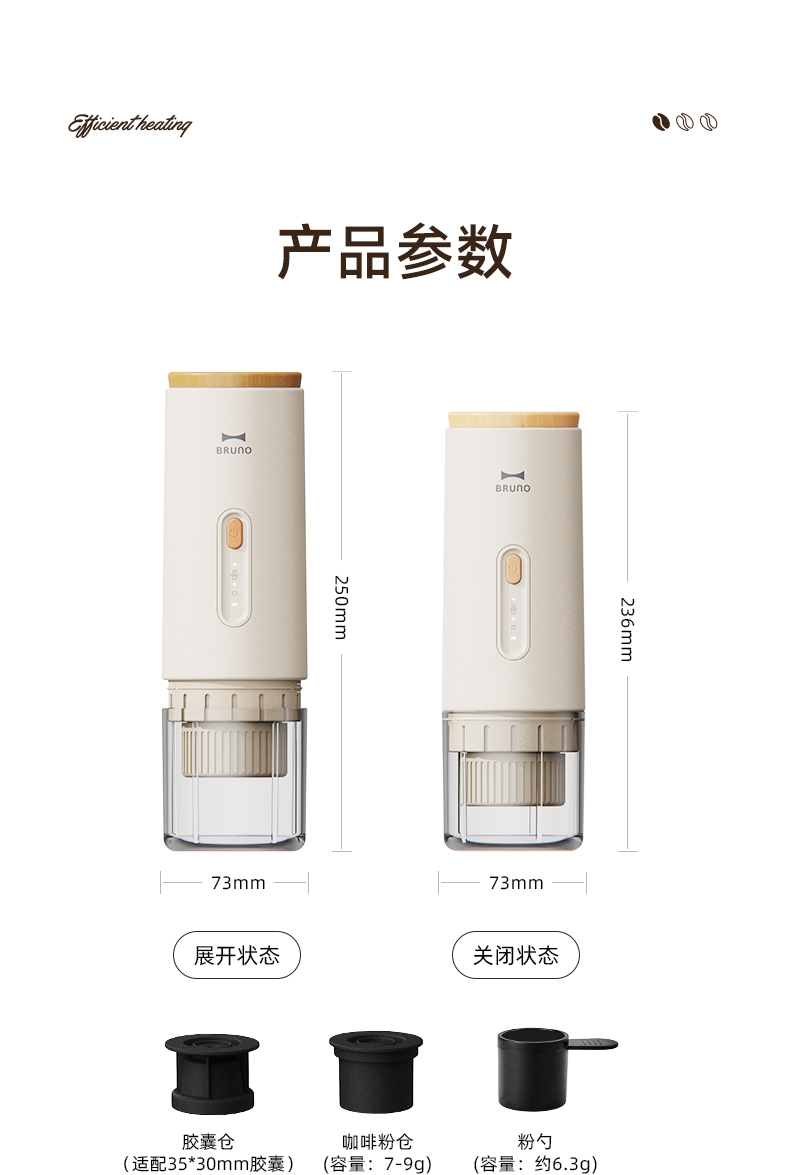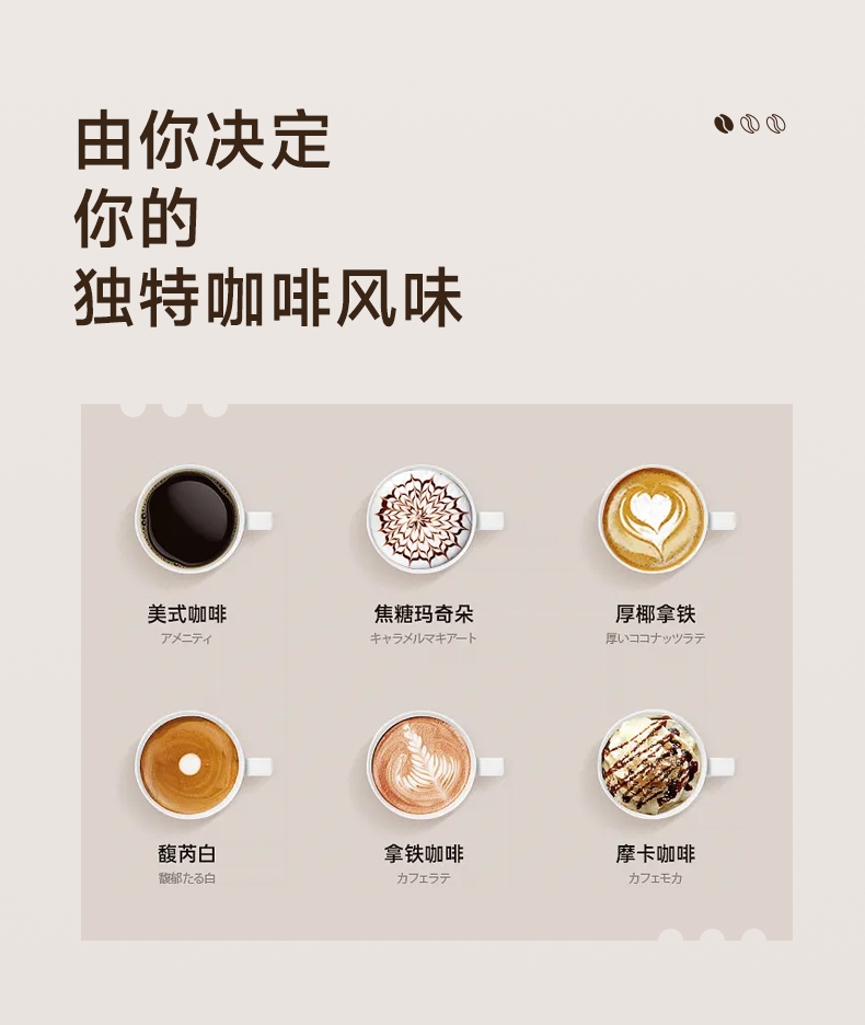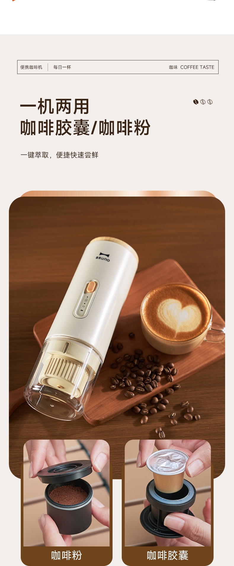 有水就能萃,不挑水温:热萃/直萃模式随心选;内有微型高压水泵,压力稳定萃 取可达20Bar;兼容咖啡粉&咖啡胶囊,两个粉仓可随心替换
