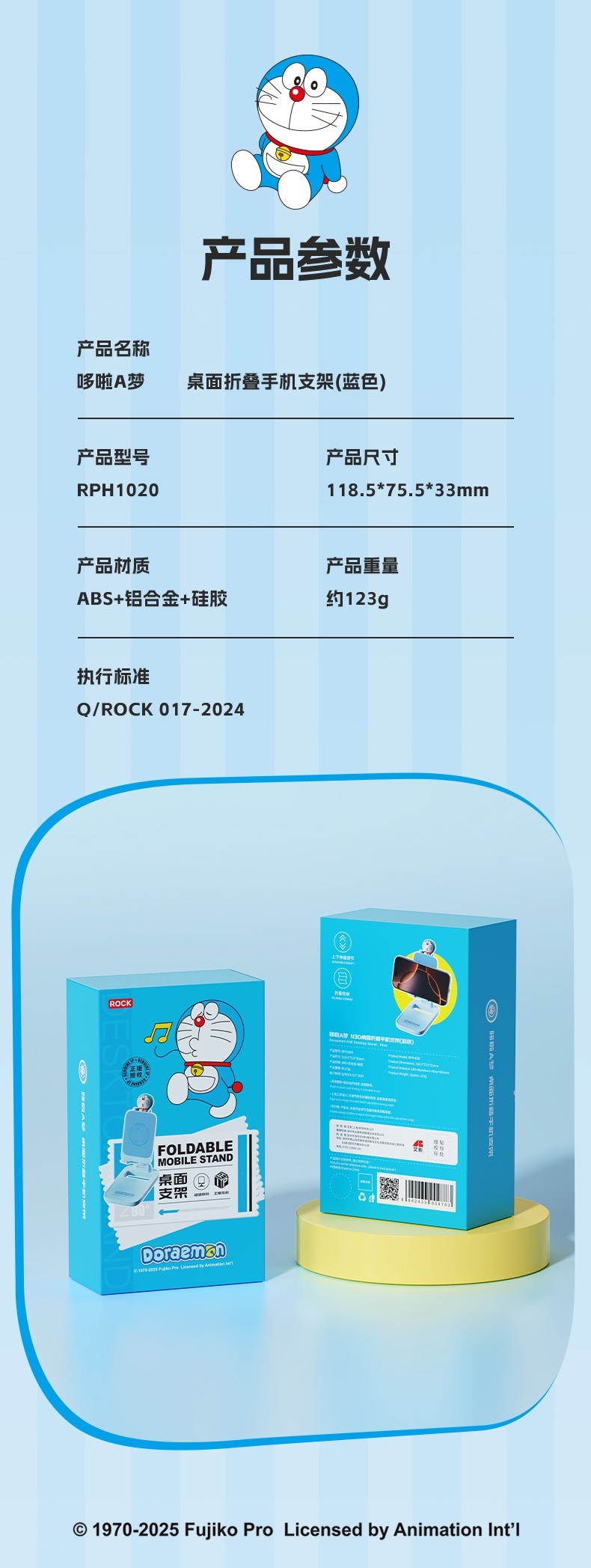 ROCK 联名哆啦A梦桌面折叠手机支架