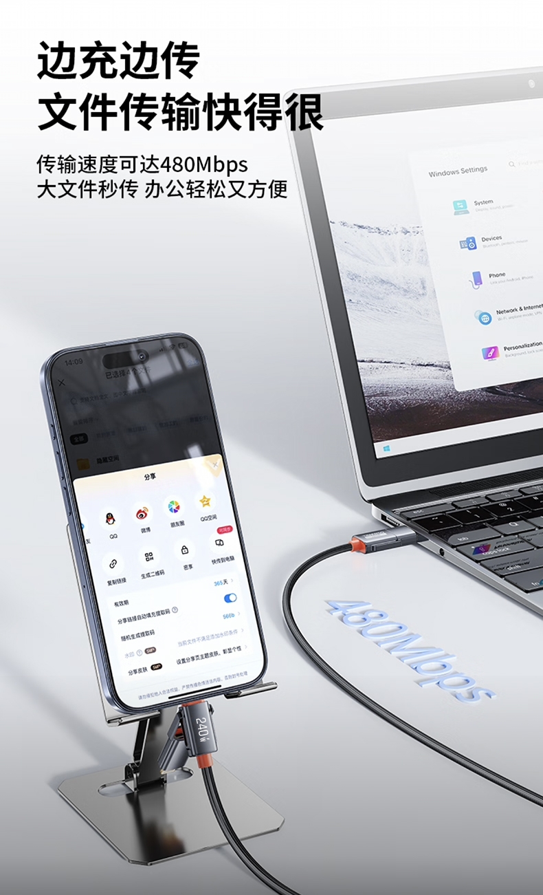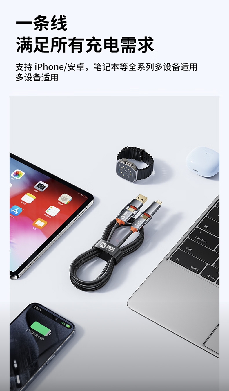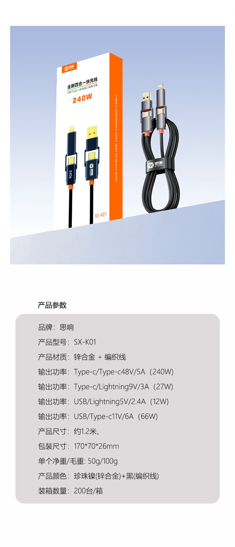 :锌合金 + 编织线;四合一快充线240W;多功能快充线