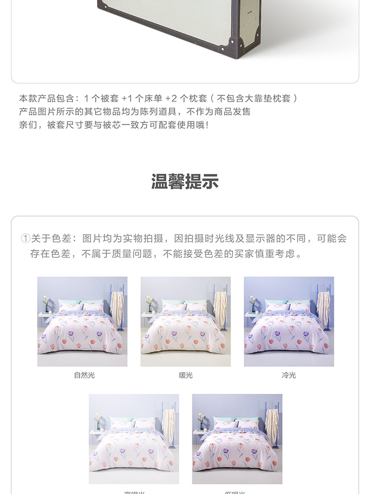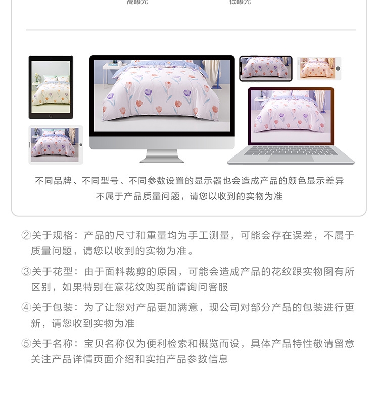 规格 :枕套:48*74cmX2 被套:200*230cmX1 220*250cmX1 床单:230*240cmX1 260*240cmX1