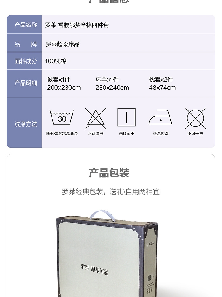 罗莱家纺 香馥郁梦全棉四件套