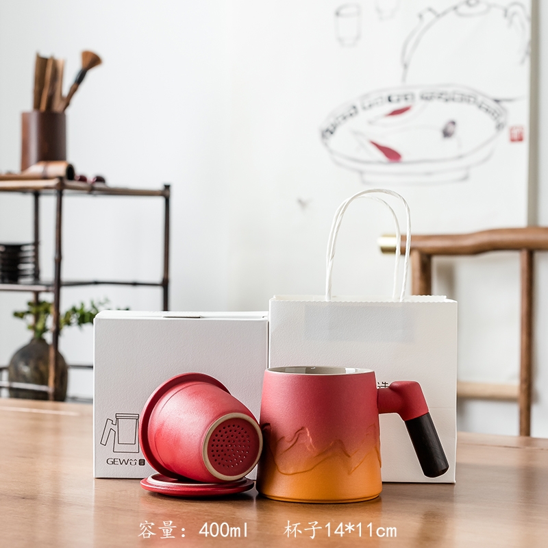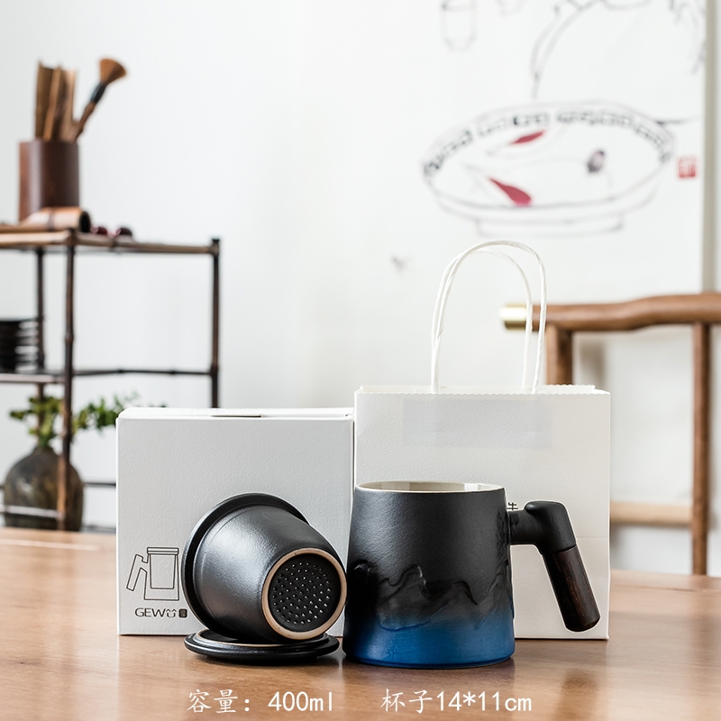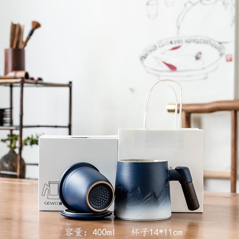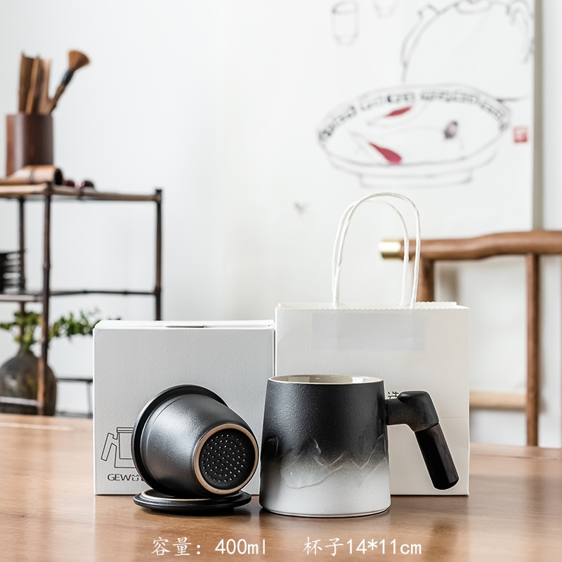 拂器 山海陶瓷茶水分离办公杯礼品盒BGB004-2