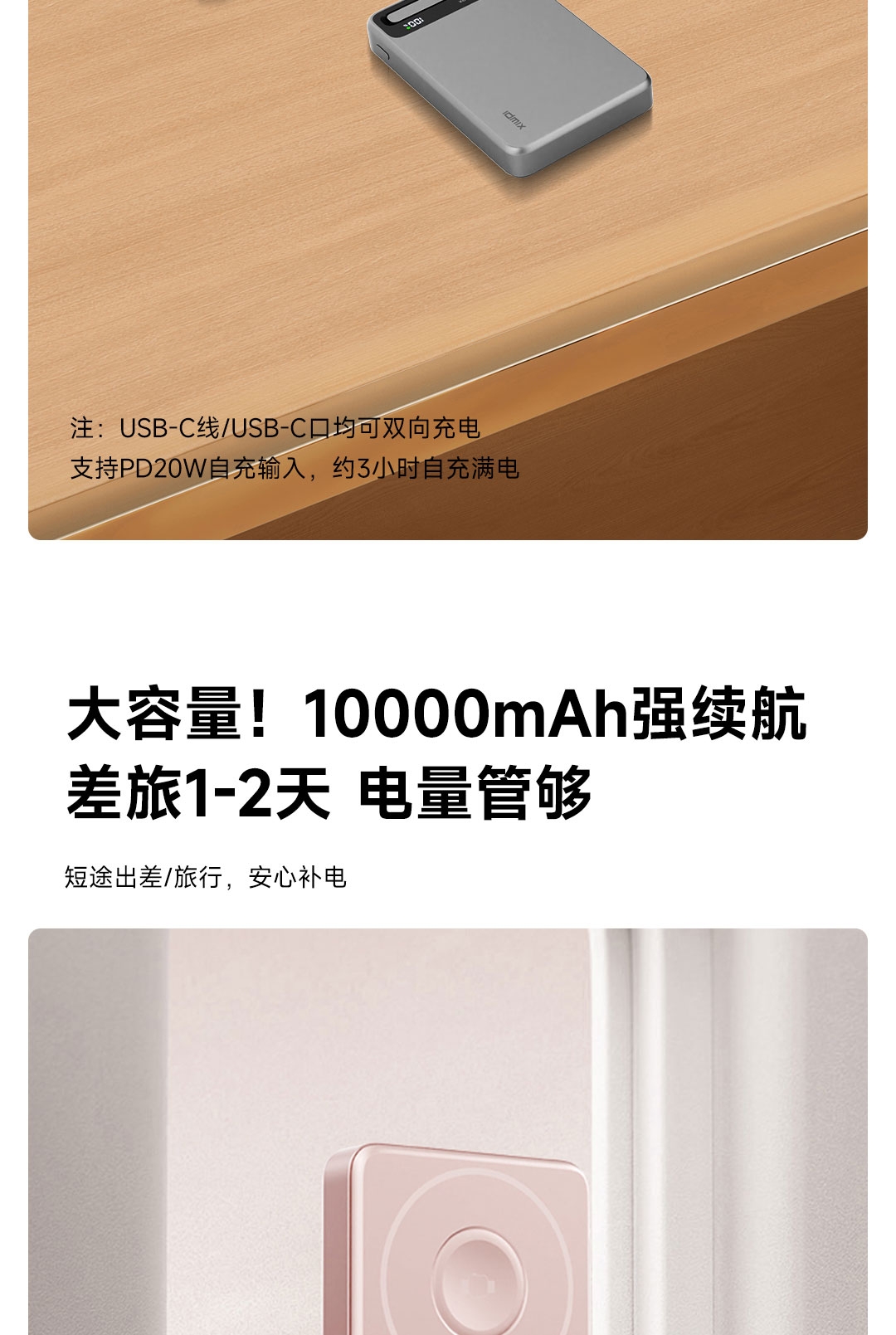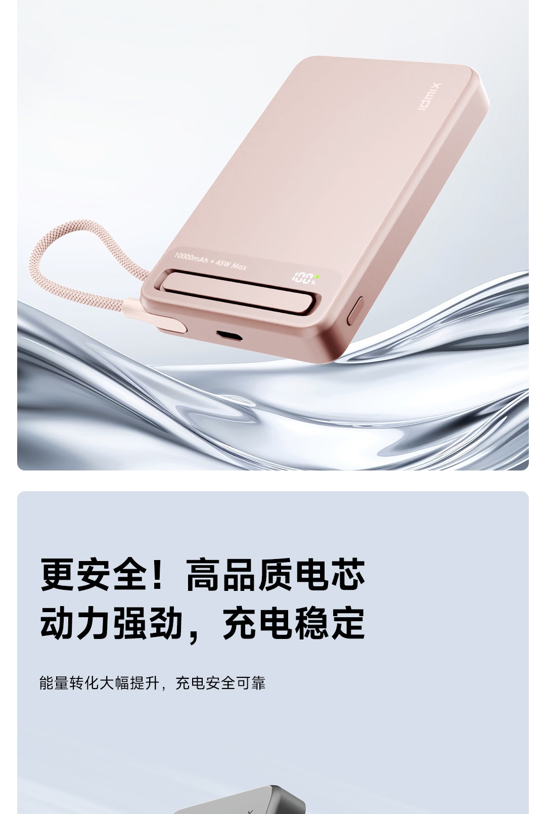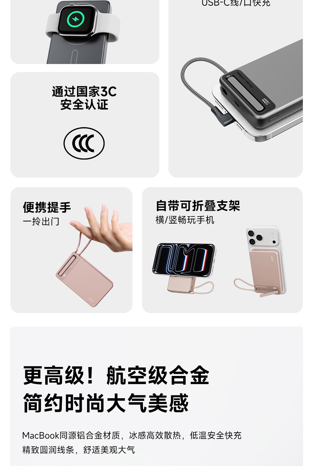 荣获2025年德国红点奖;10000mAh支持Apple Watch系列充电;PD45W快充线+15W强力磁吸无线输出