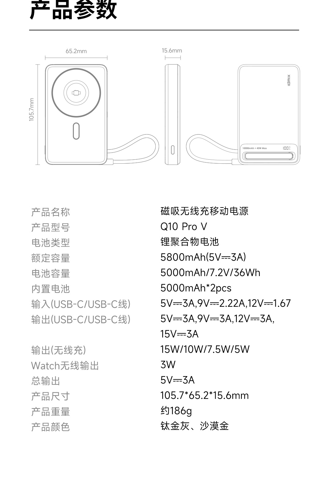 IDMIX 45W磁吸无统充移动电源Q10PROV