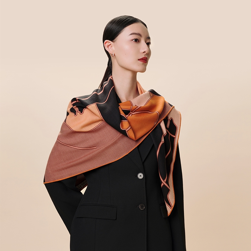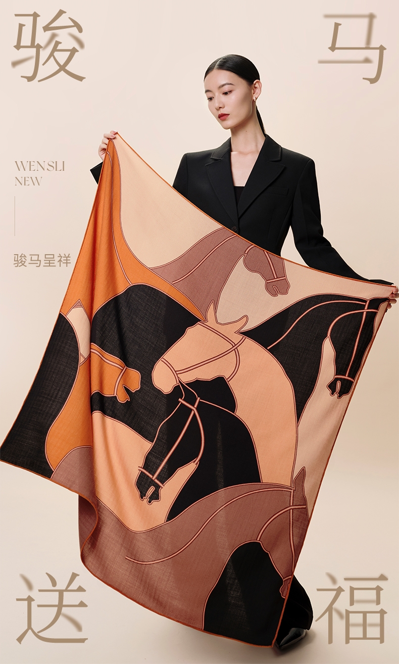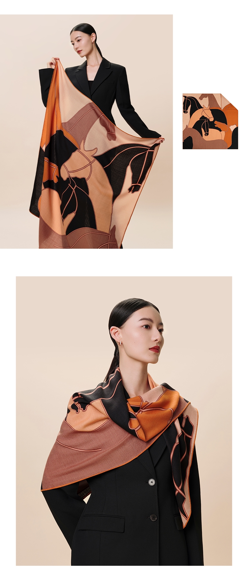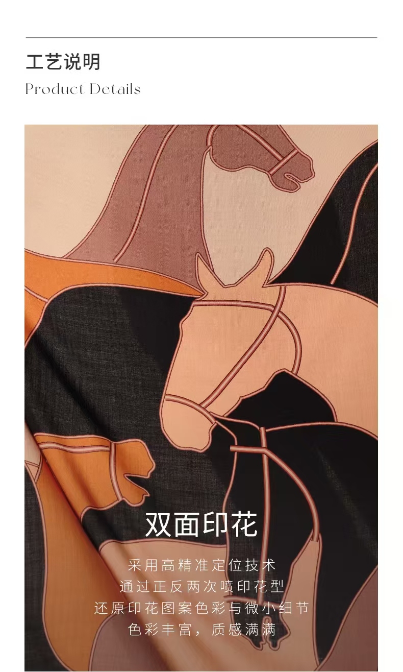 万事利 骏马呈祥双面印花丝羊毛围巾