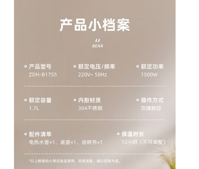 小熊 多段智能保温电热水壶1.7LZDH-B17S5