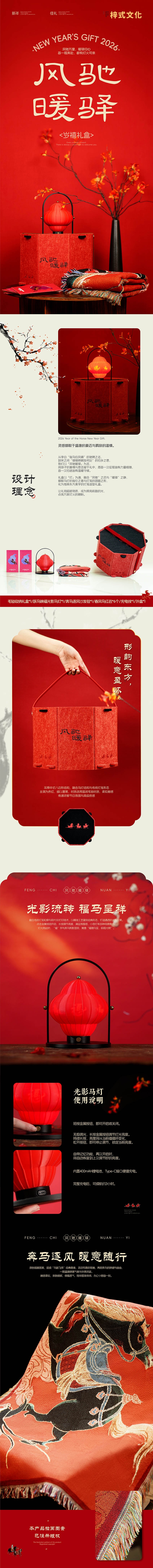 配置清单:礼盒清单 (展示所有产品的白底图) 毛毡收纳礼盒*1 光影拍拍马灯*1 奔马逐风沙发毯/盖毯*1 春风马红包*6个 充电线*1 外盒*1