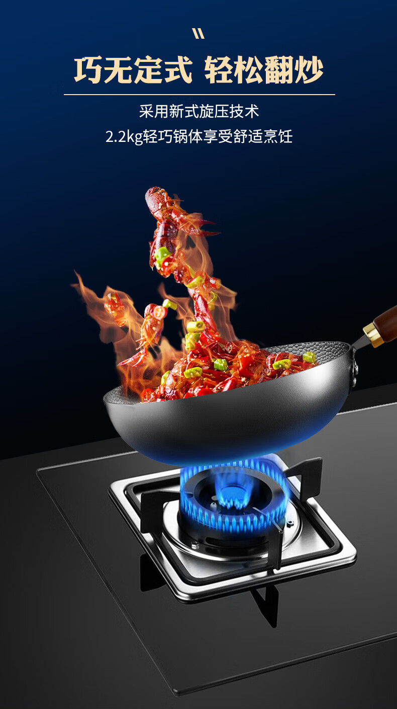 旋压技术,锅体轻薄,轻松掂锅翻炒;透明可视钢化玻璃锅盖,烹饪进程随时掌握;榉木手柄,隔热防烫,握感舒适,可悬挂