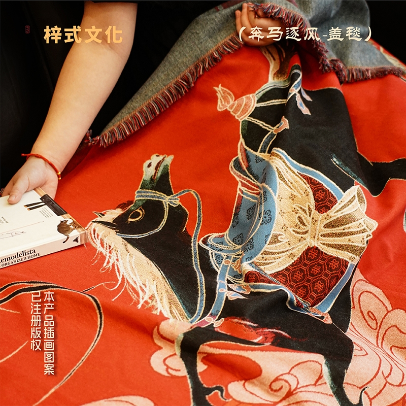 配置清单:礼盒清单 毛毡收纳礼盒*1 光影拍拍马灯*1 奔马逐风沙发毯/盖毯*1 春风马红包*6个 充电线*1 外盒*1