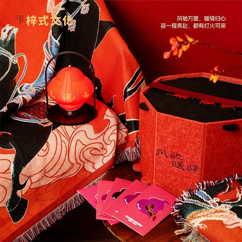 梓式文化 风驰暖驿岁禧毛毡灯笼礼盒盖毯