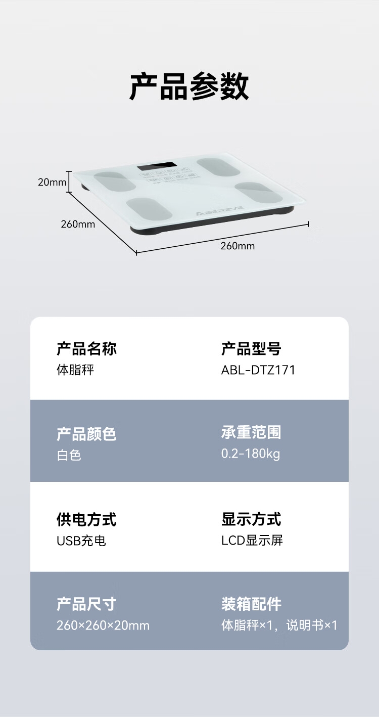 艾贝丽 家用体脂秤电子称ABL-DTZ171