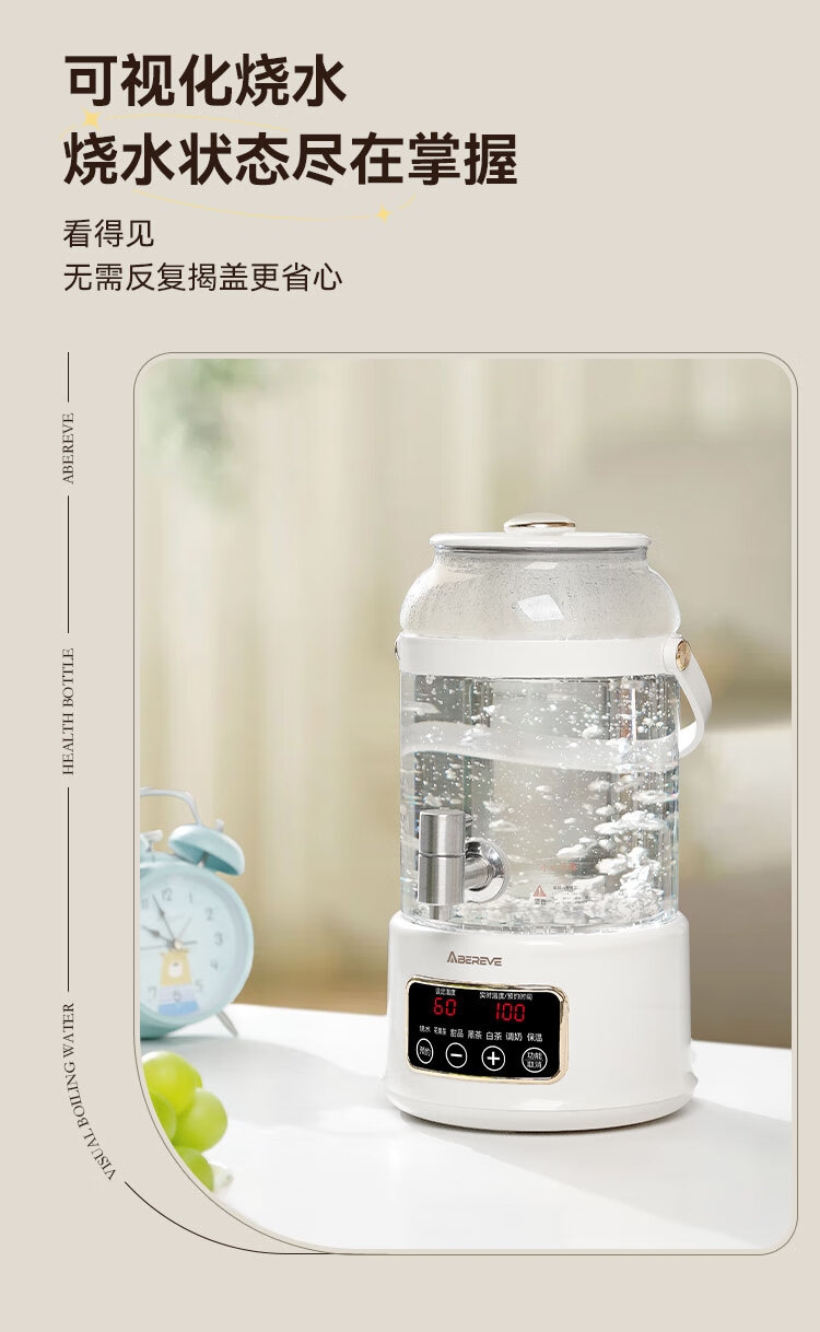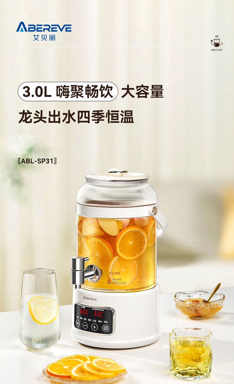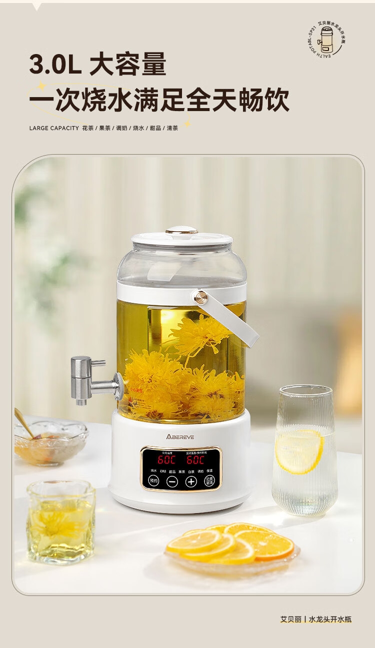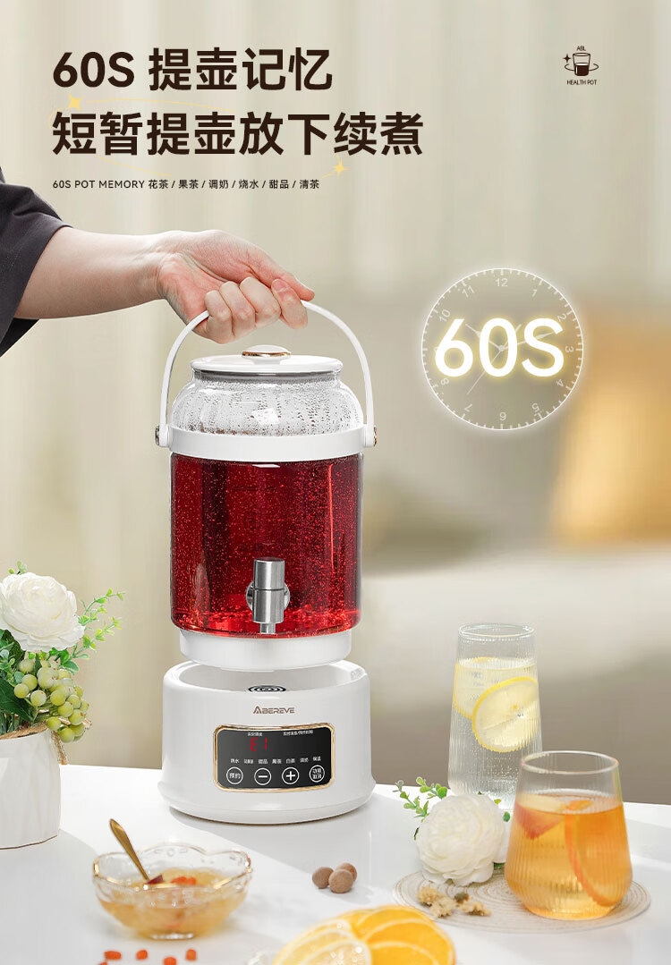 大容量多功能养生桶,高硼硅玻璃壶体,冷热不易开裂;分体式设计,接水清洗更方便;3L容量任放没压力,全天候畅饮