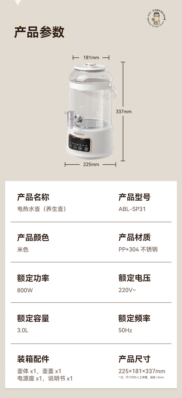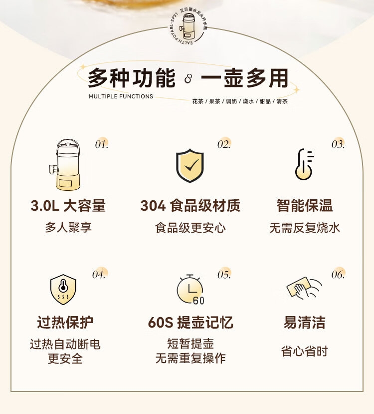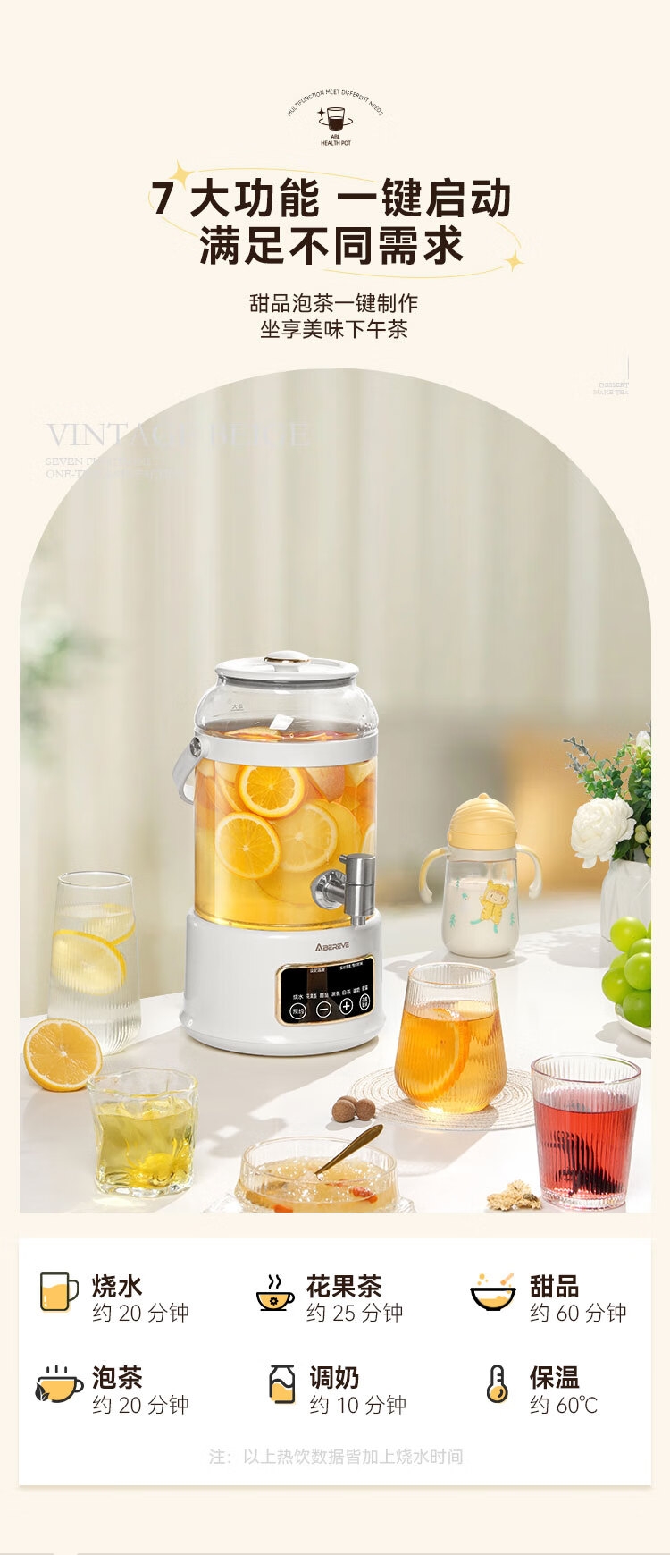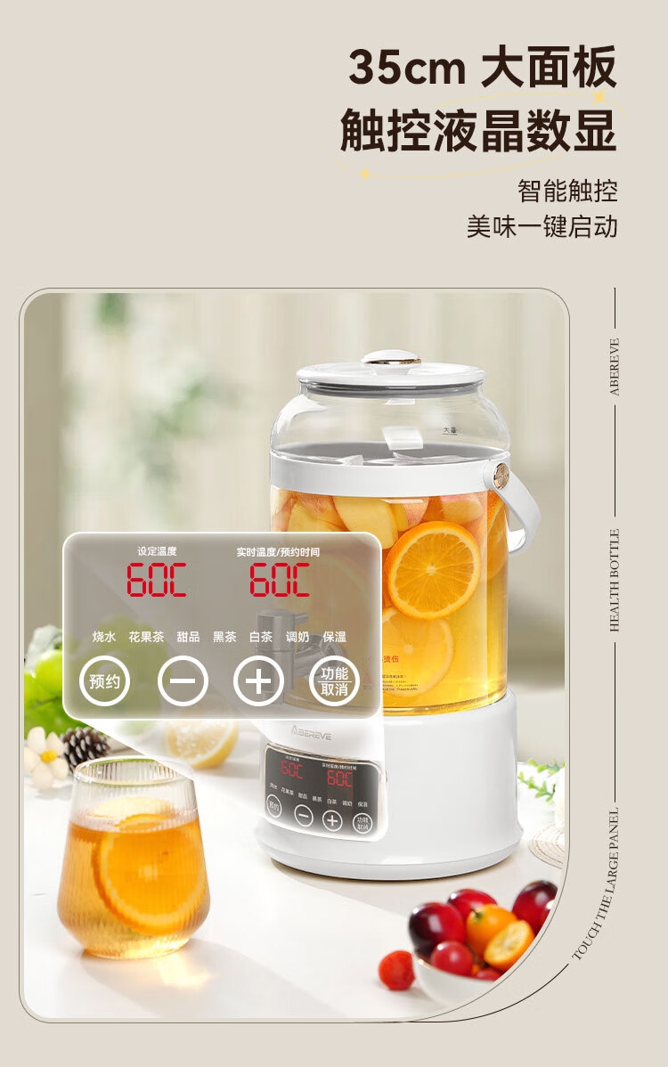 大容量多功能养生桶,高硼硅玻璃壶体,冷热不易开裂;分体式设计,接水清洗更方便;3L容量任放没压力,全天候畅饮