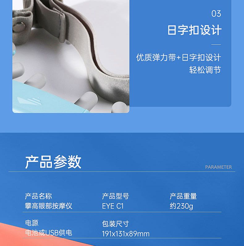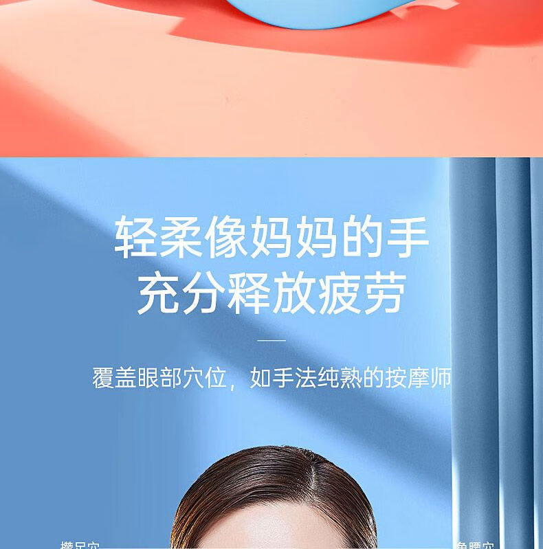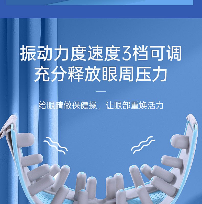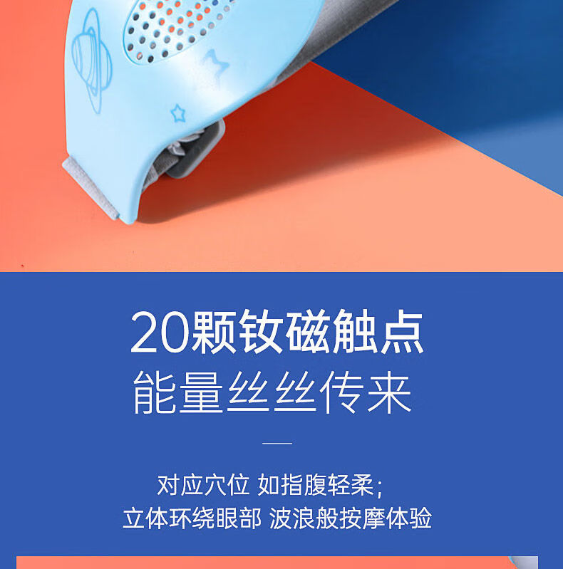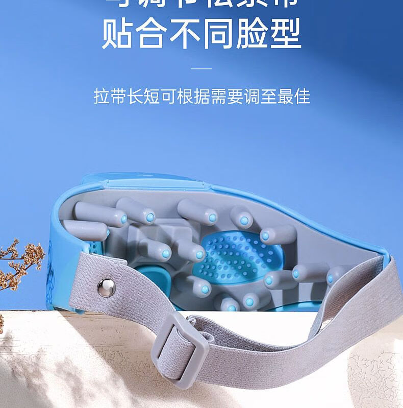 20颗钕磁触点一一对应穴位,如指腹般轻柔;20根硅胶软棒立体环绕眼部,波浪般按摩体验;双模供电,随时随地可补充能量